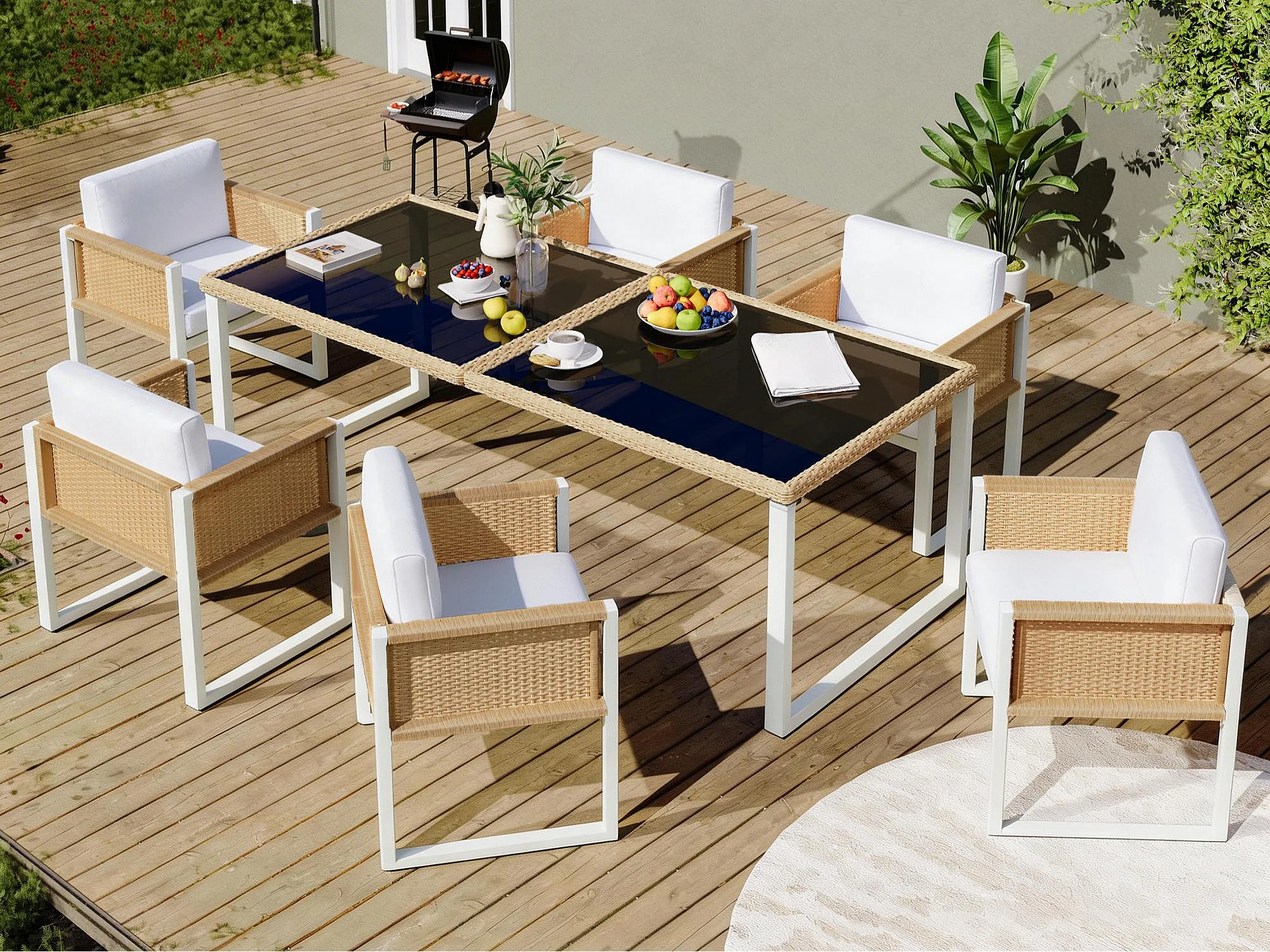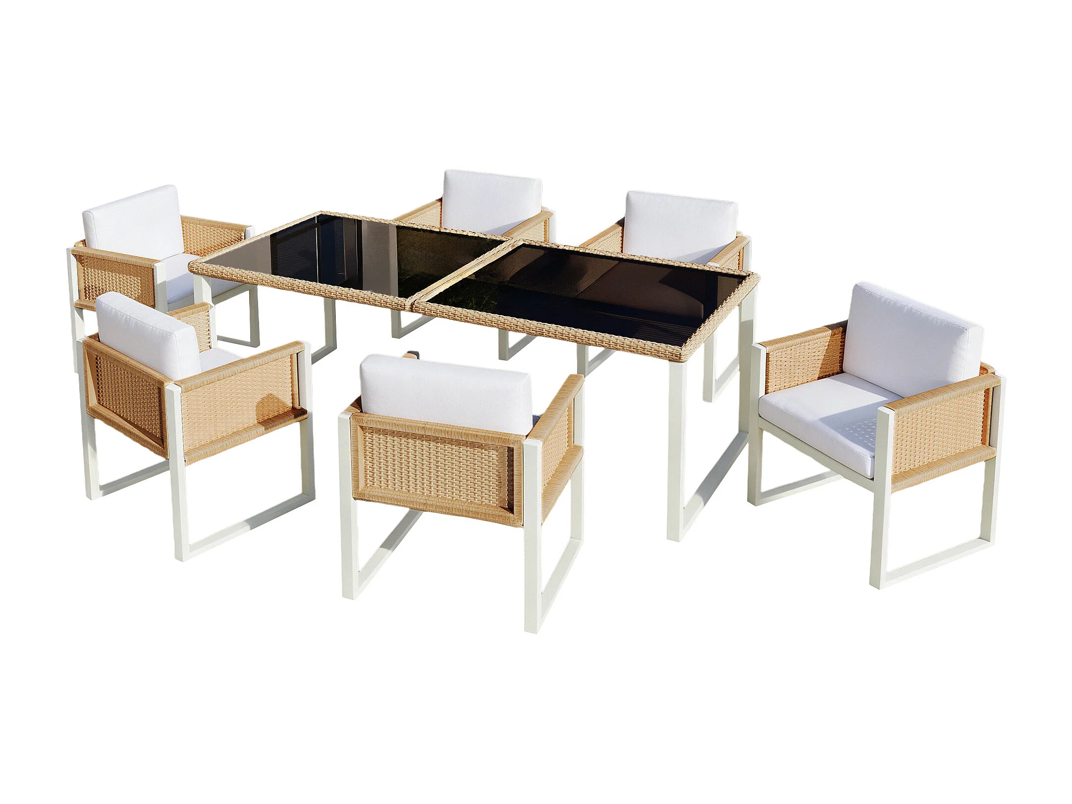 Tuin eetkamer set voor 6 personen - 6 fauteuils - 1 tafel - frame van gegalvaniseerd ijzer - in afneembare en wasbare stof - wit