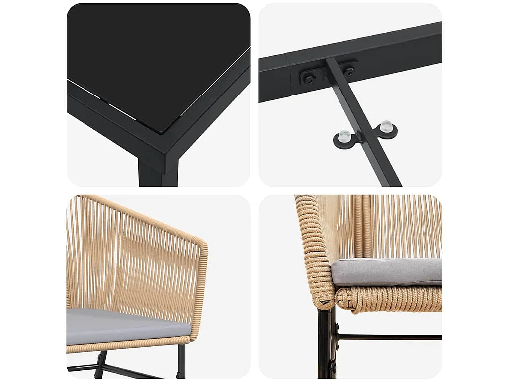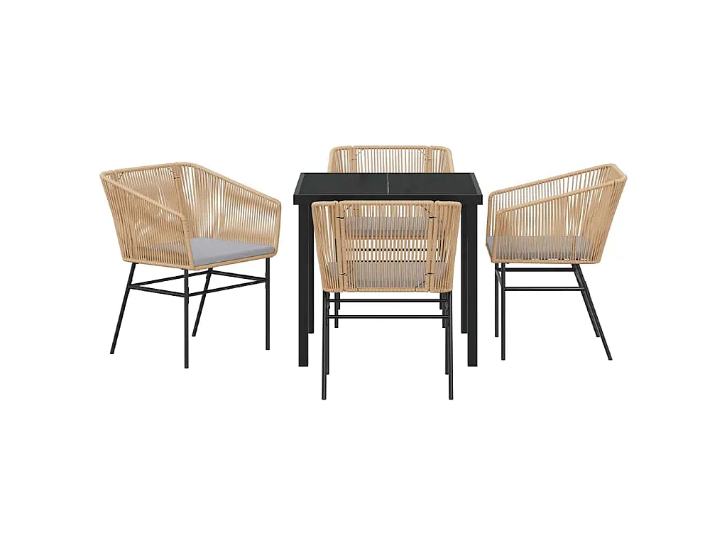 Tuin eettafelset met kussen 5 pcs Bruin Gepoedercoat staal