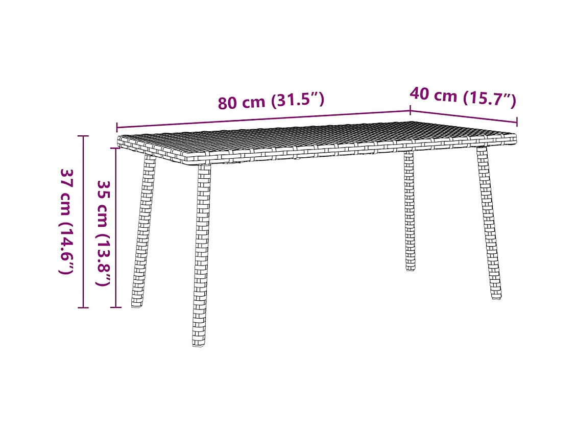 Tuin salontafel rechthoekig 80x40x37 cm poly rattan grijs