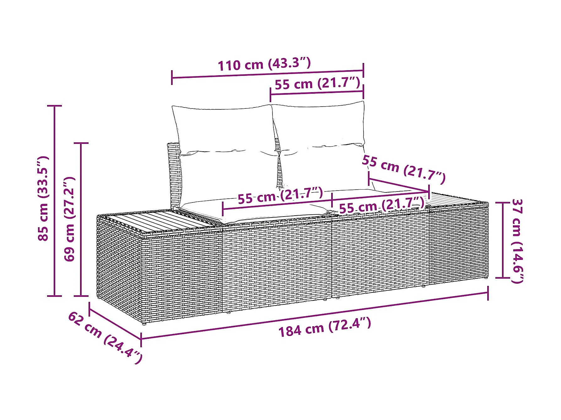 Tuin Sofa Set met kussen met opslag 9 pcs Zwart Poly riet