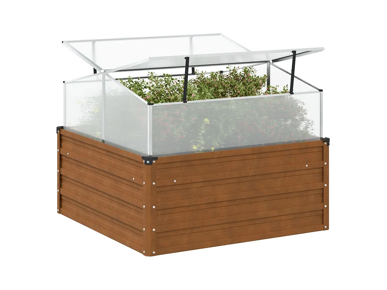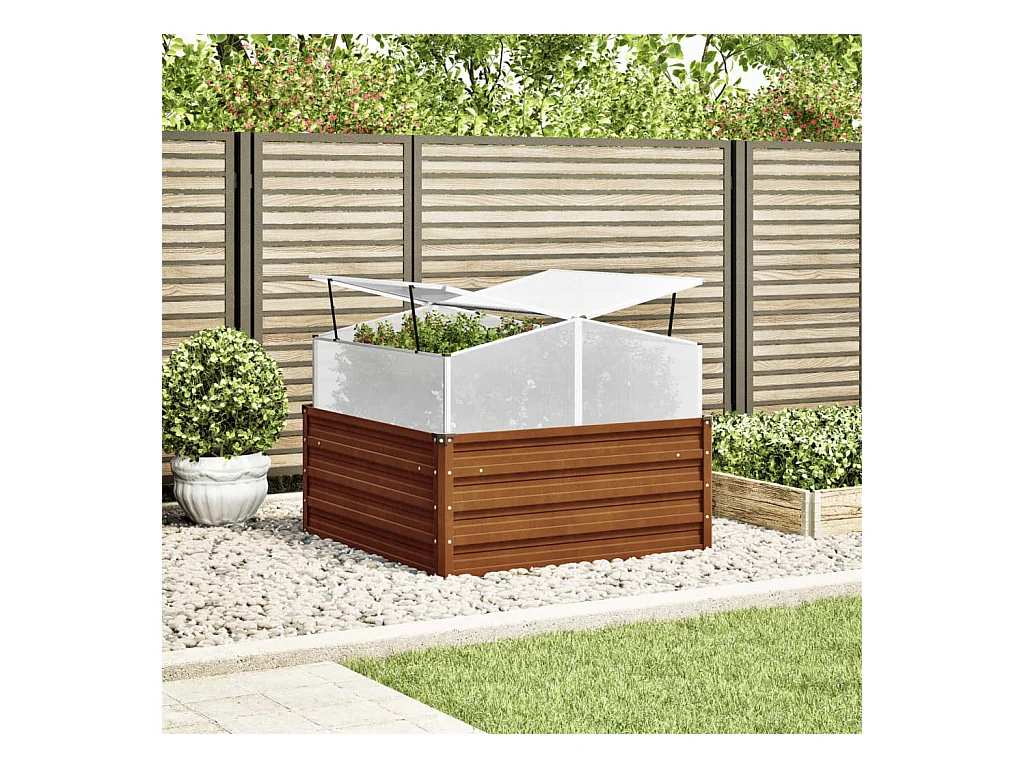 Verhoogde plantenbak Bruin 100x100x77 cm Gegalvaniseerd staal