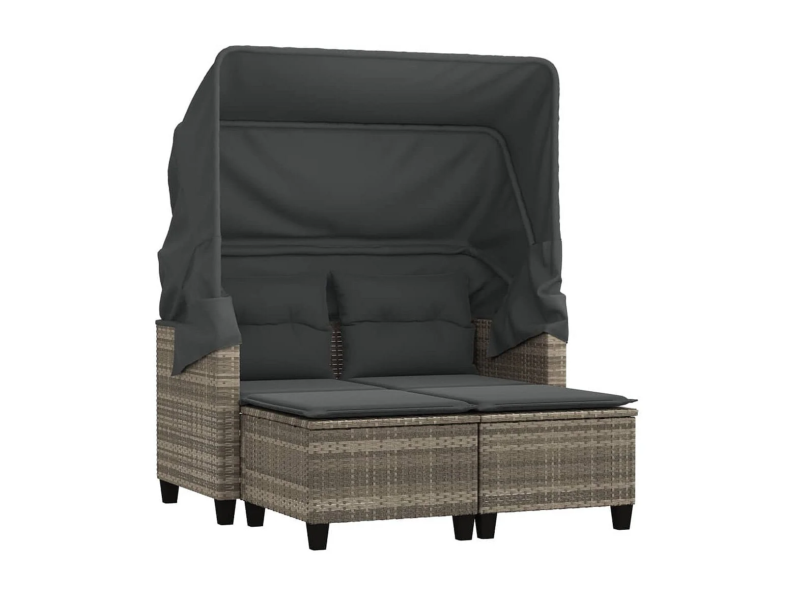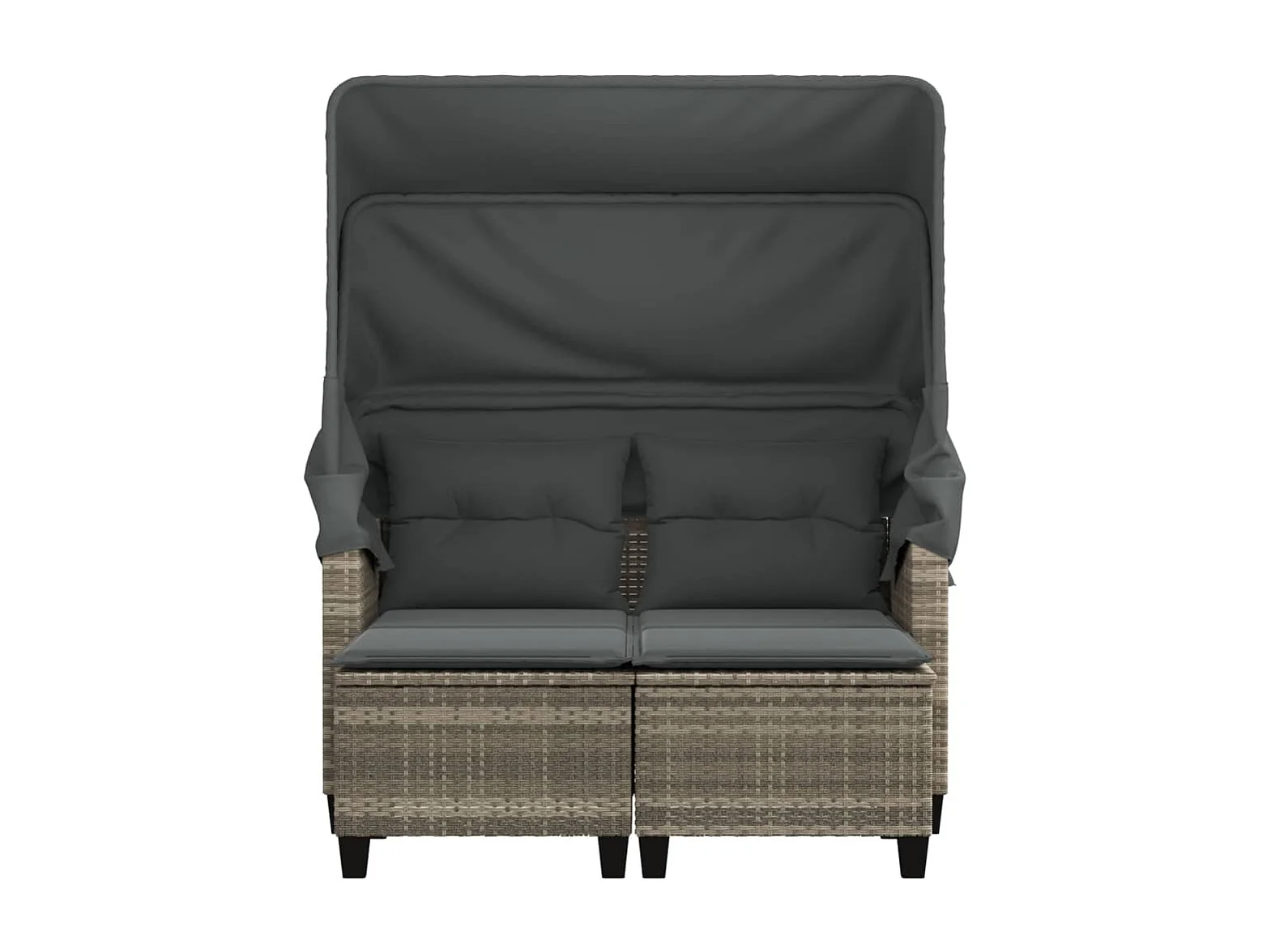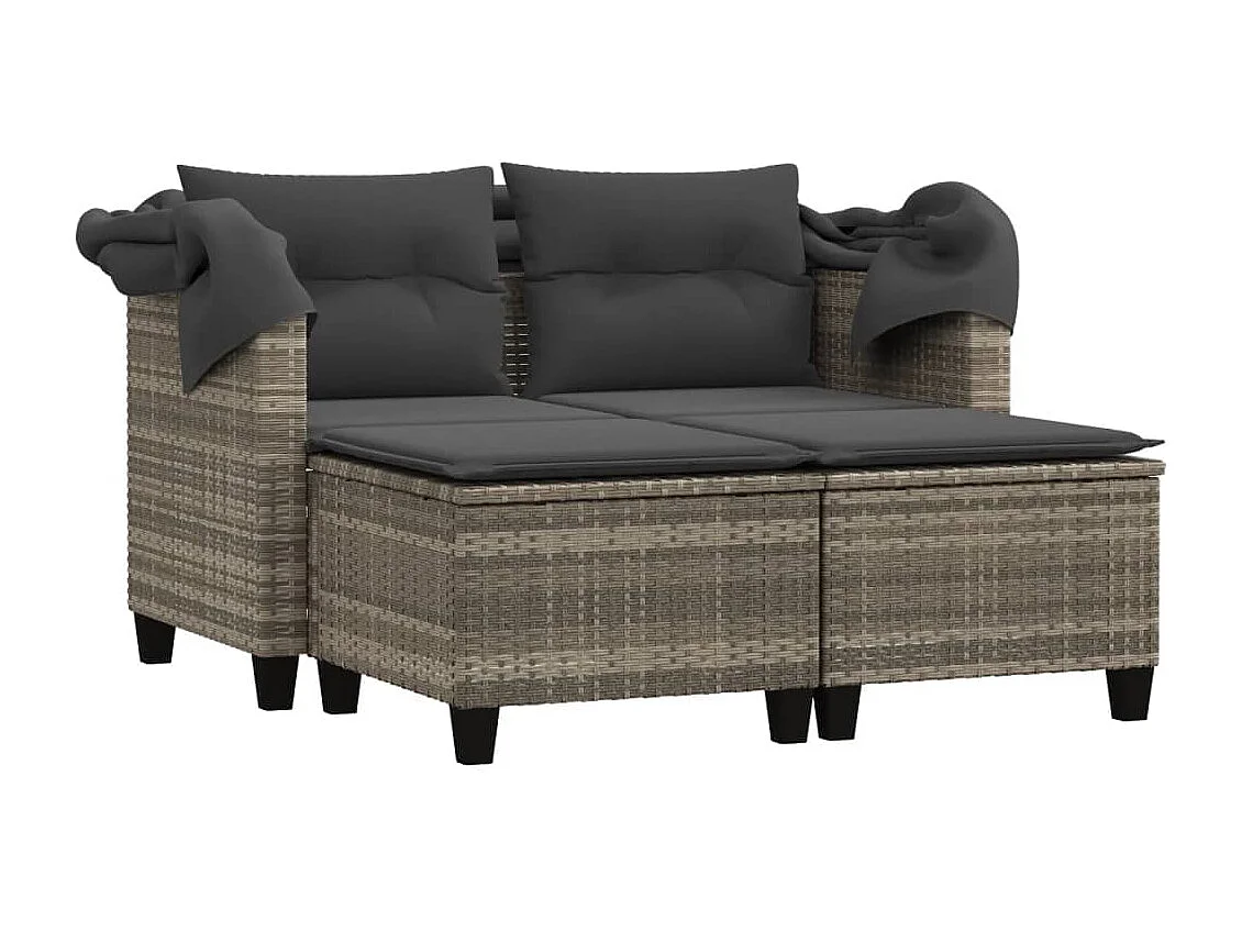 Tuinbank 2-zits luifel en voetenbanken poly rattan lichtgrijs