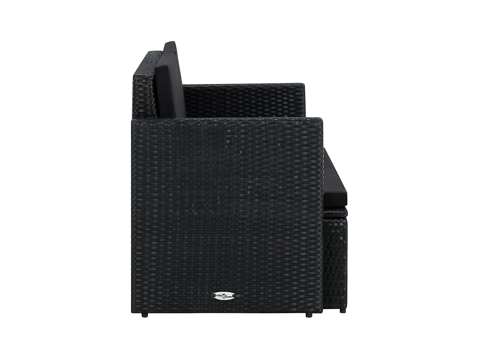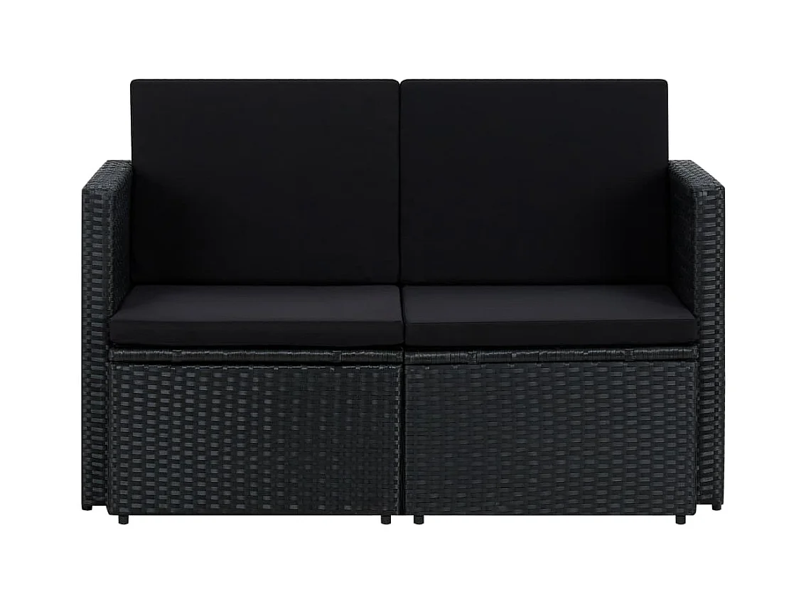 Tuinbank 2-zits met kussens poly rattan zwart NL129084