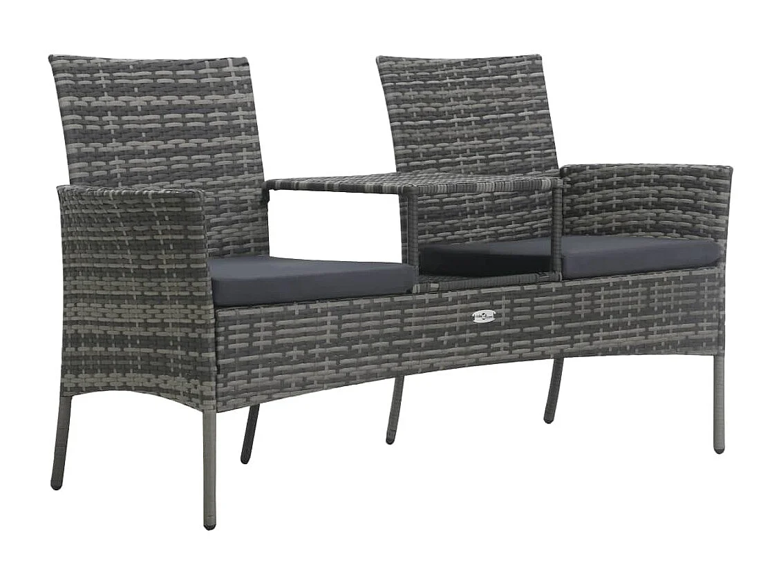 Tuinbank 2-zits met tafeltje poly rattan antraciet