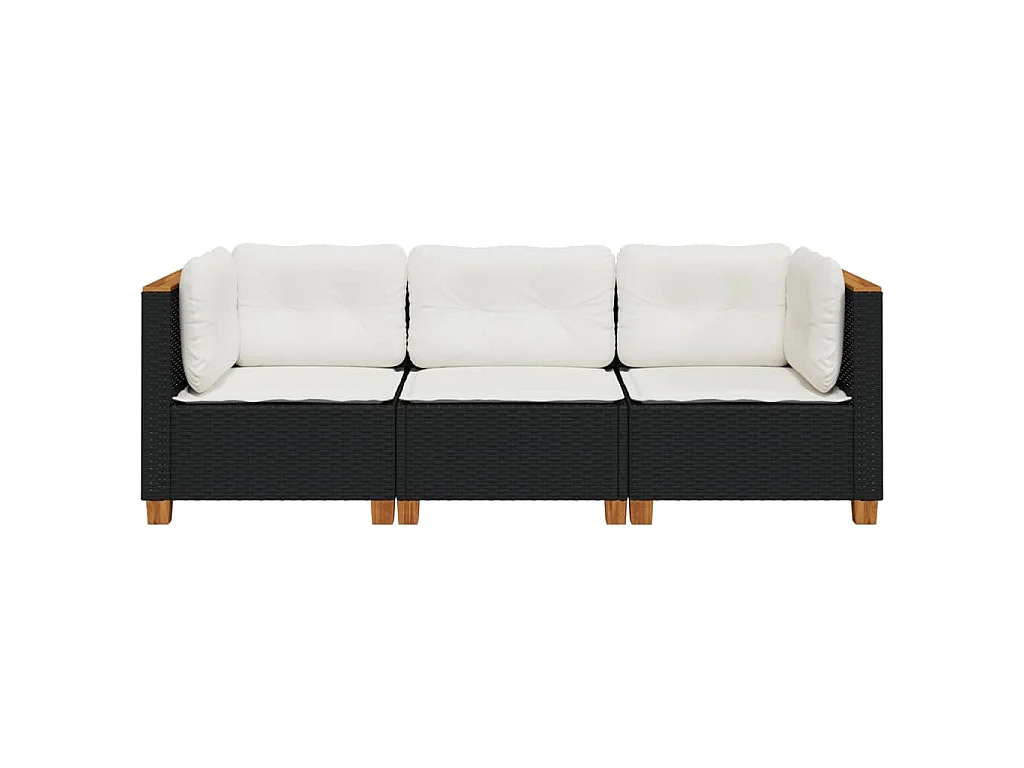 Tuinbank 3-zits met kussens poly rattan zwart