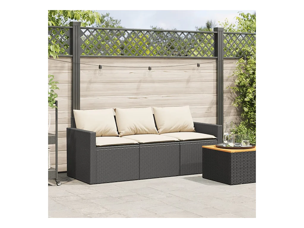 Tuinbank 3-zits met kussens poly rattan zwart BE999286