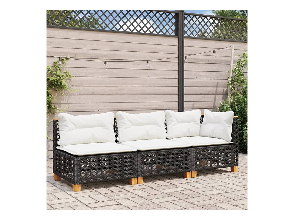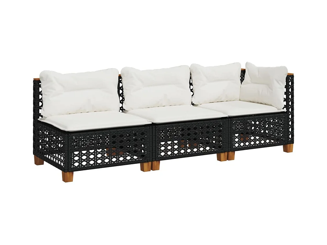 Middenbank sectioneel met kussens poly rattan zwart BE788058
