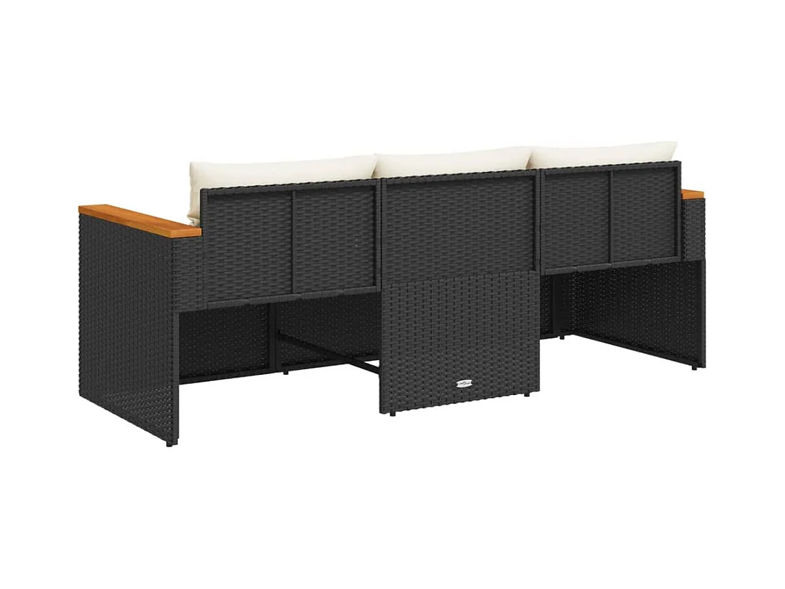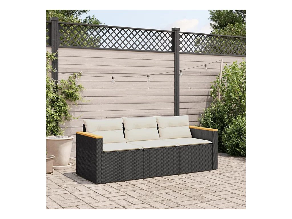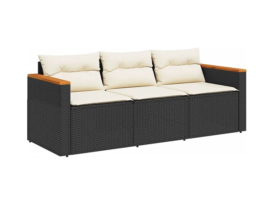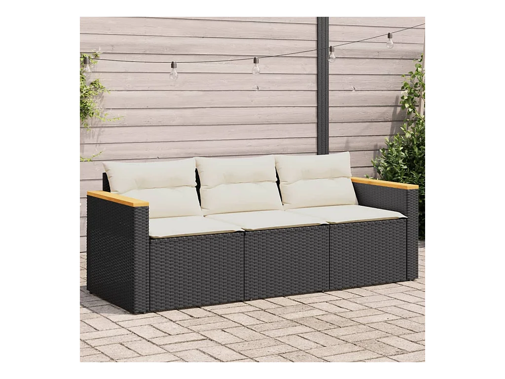 Tuinbank 3-zits met kussens poly rattan zwart BE999286