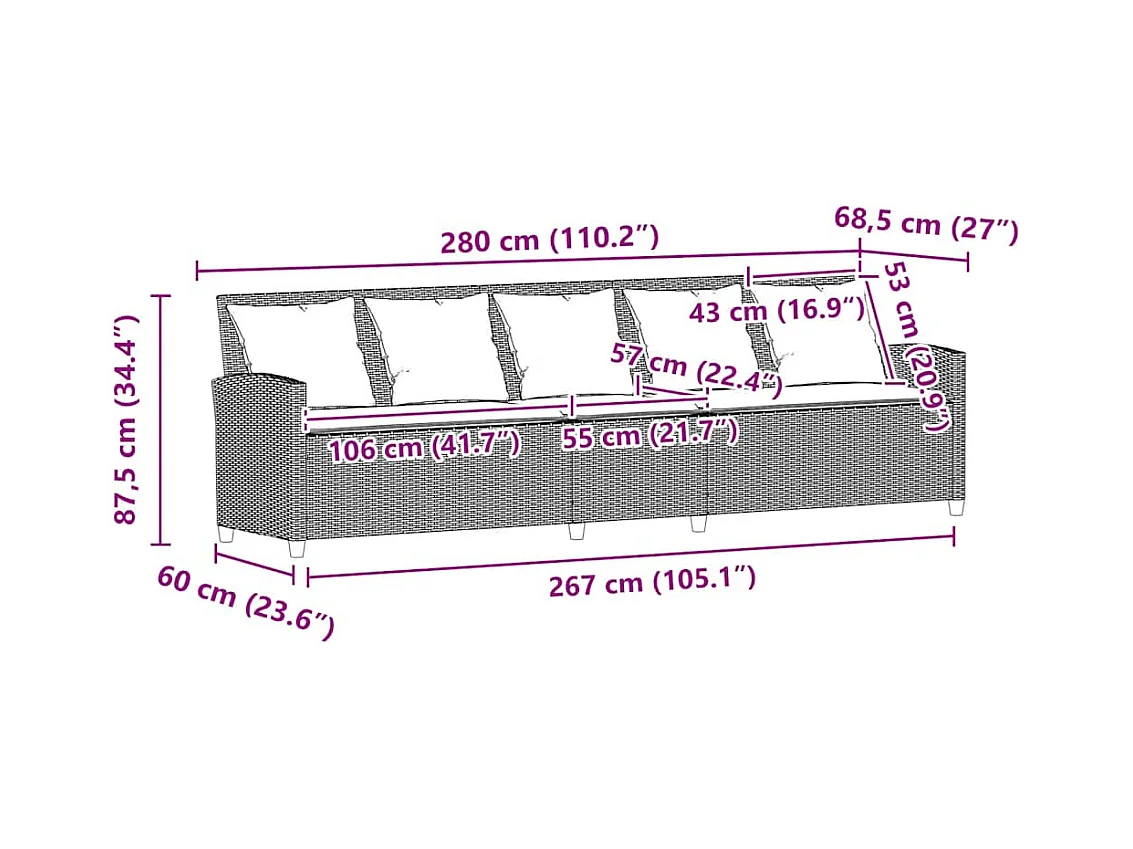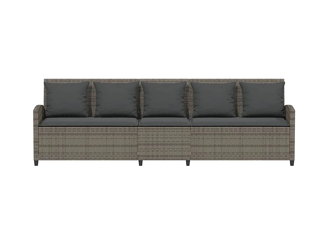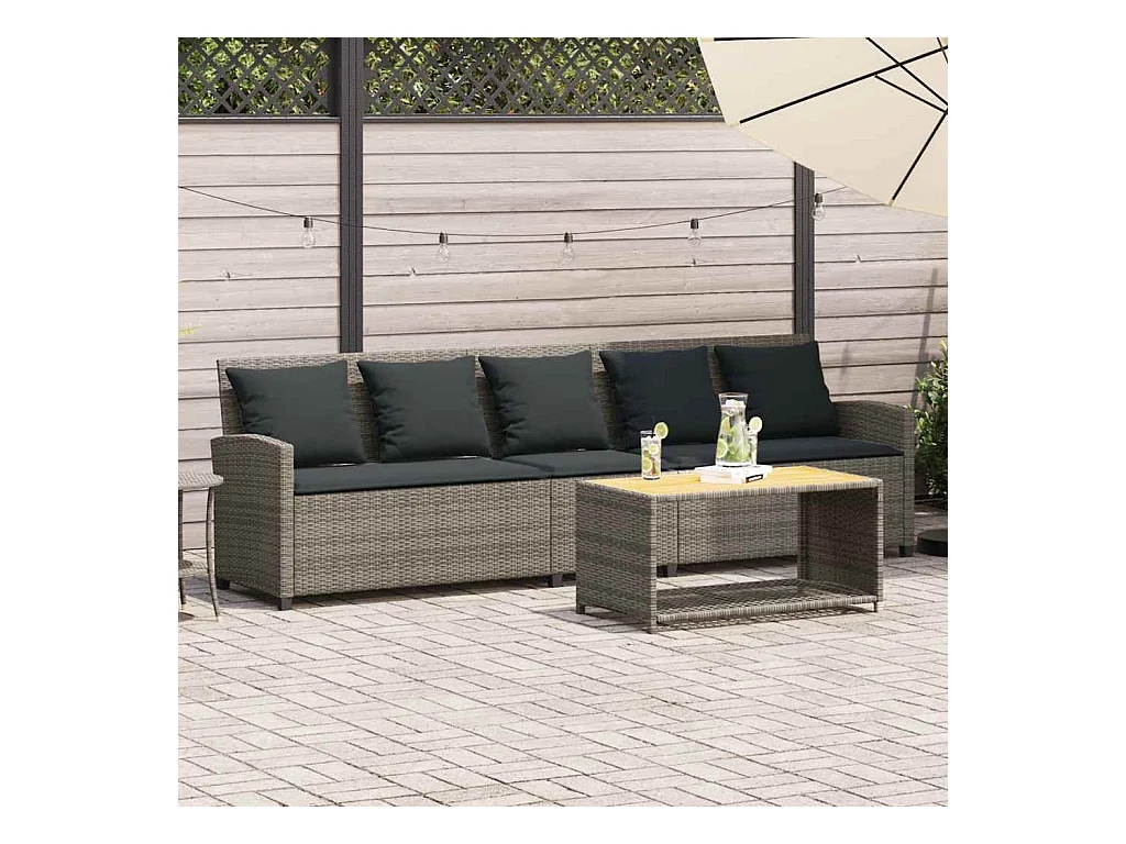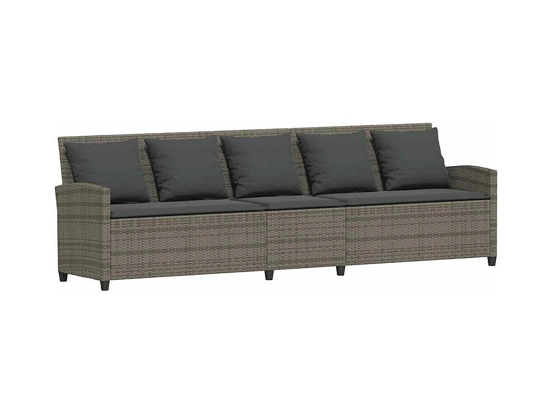 Tuinbank 5-zits met kussens poly rattan grijs