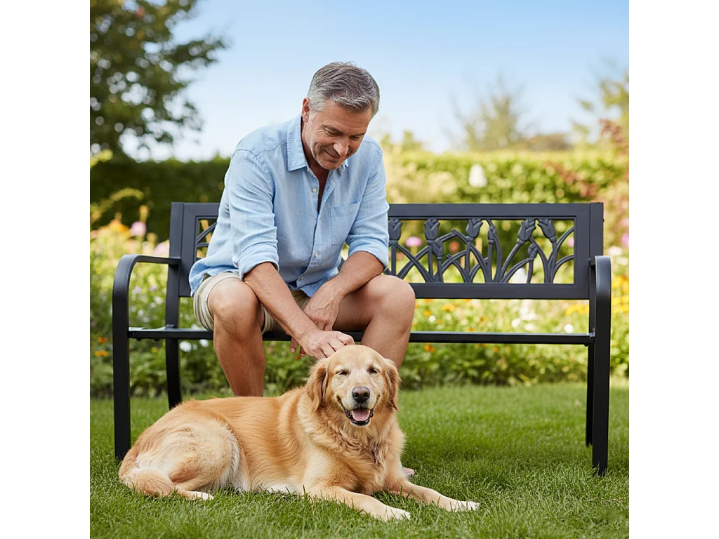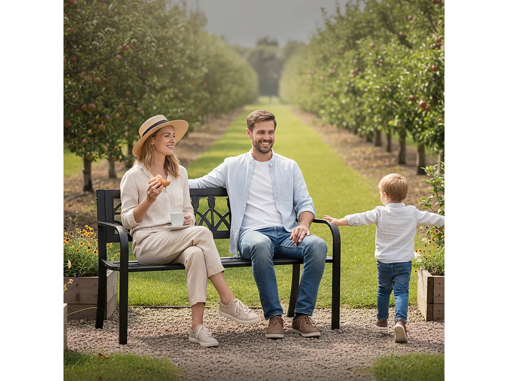 Tuinbank LISSA / Buitenbank / Metaal en Kunststof / Zwart / Maximale Belasting 320 kg / 124 x 75 x 50 cm