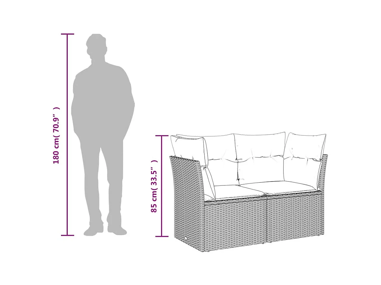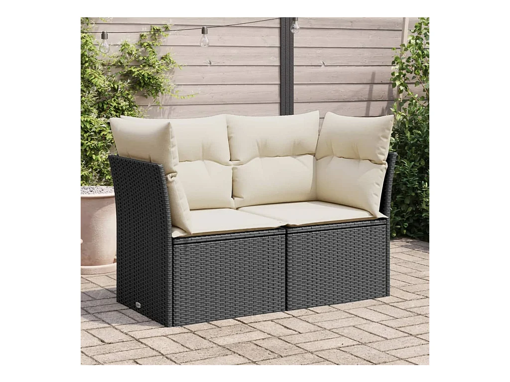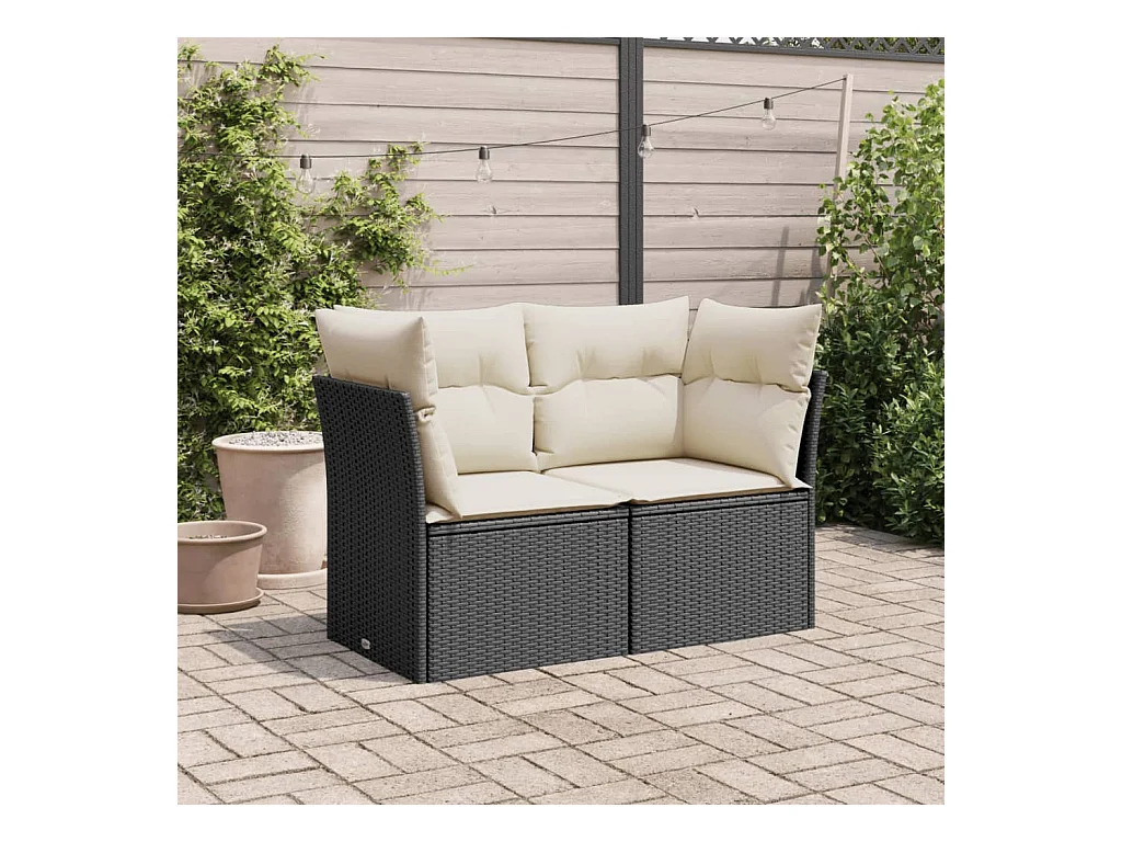 Tuinbank met 2-zitskussens, zwart geweven hars