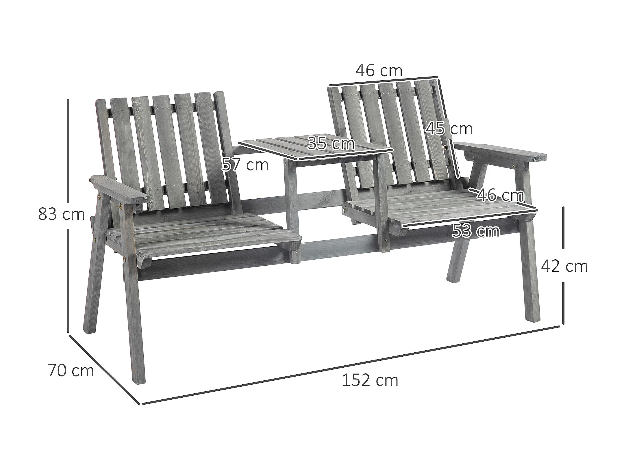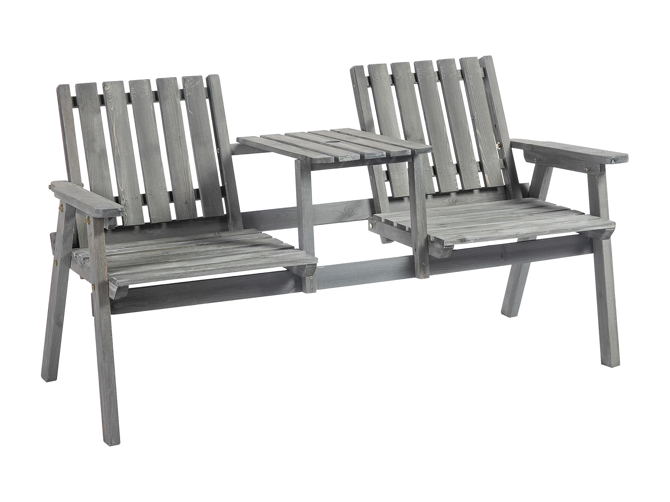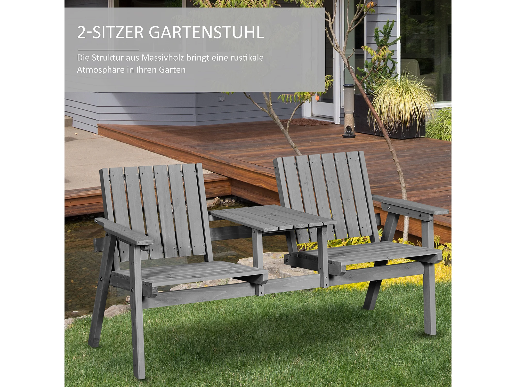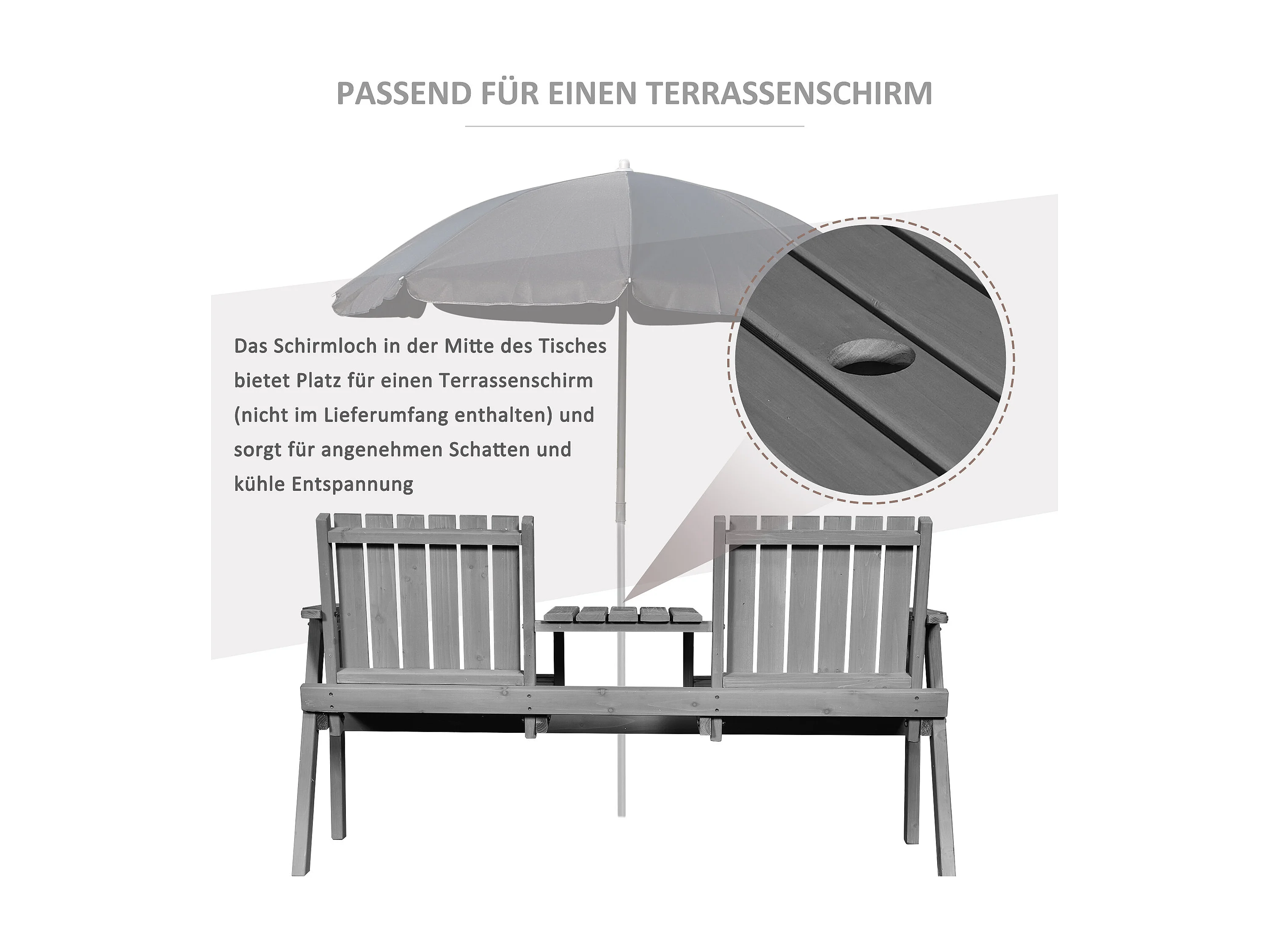 Tuinbank met geïntegreerde tafel, massief hout, grijs, parasolgat (152x70x83cm)