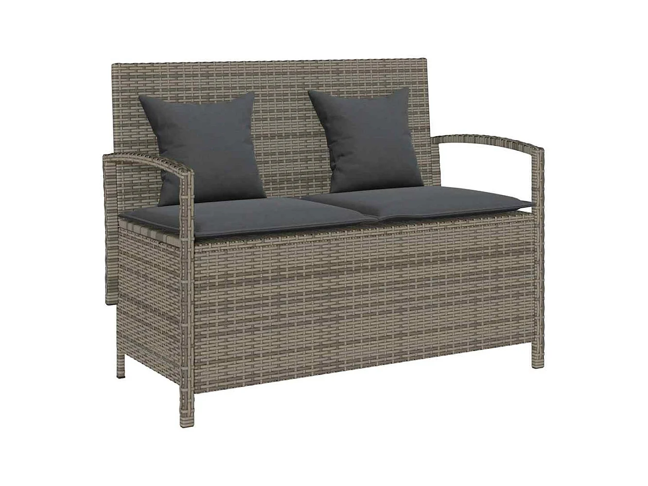 Tuinbank met grijs kussen 110x30x40,5 cm gevlochten hars