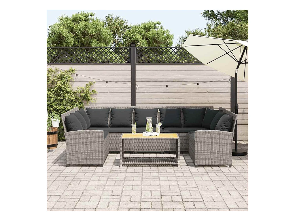 11-delige Loungeset met kussens poly rattan acacia grijs