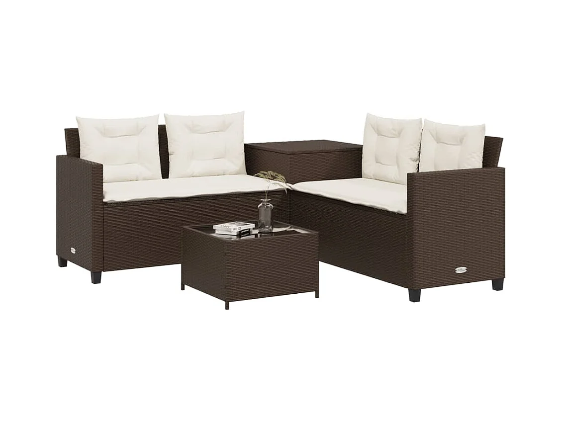 Tuinbank met tafel en kussens L-vormig poly rattan bruin BE994430