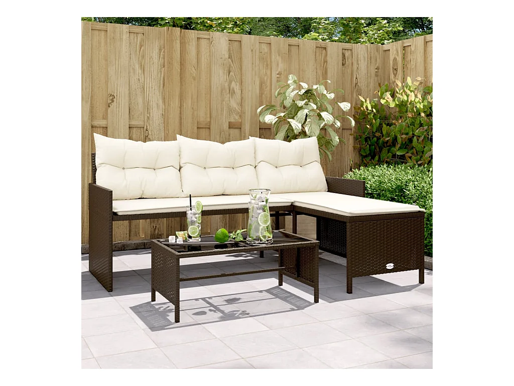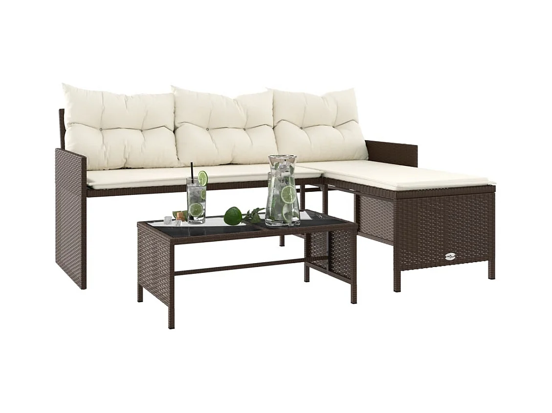 Tuinbank met tafel en kussens L-vormig poly rattan bruin BE927182