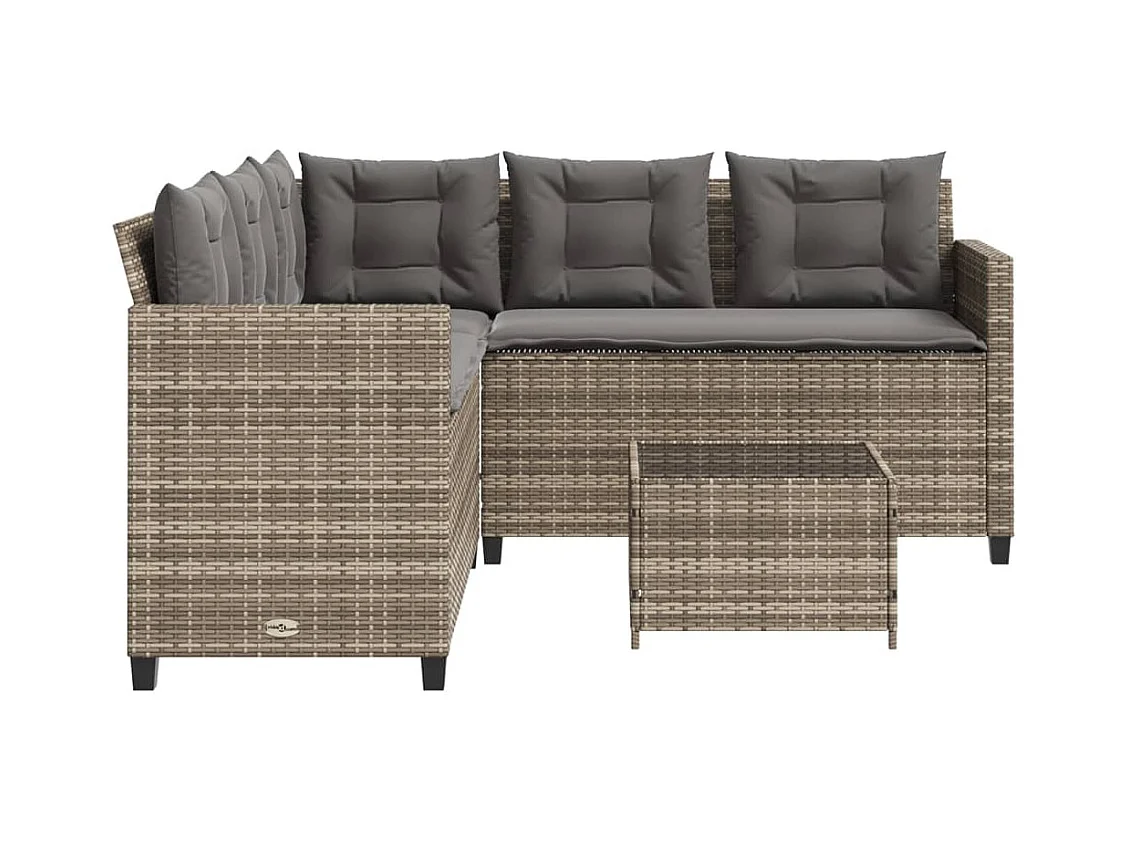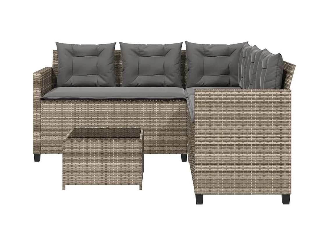 Tuinbank met tafel en kussens L-vormig poly rattan grijs
