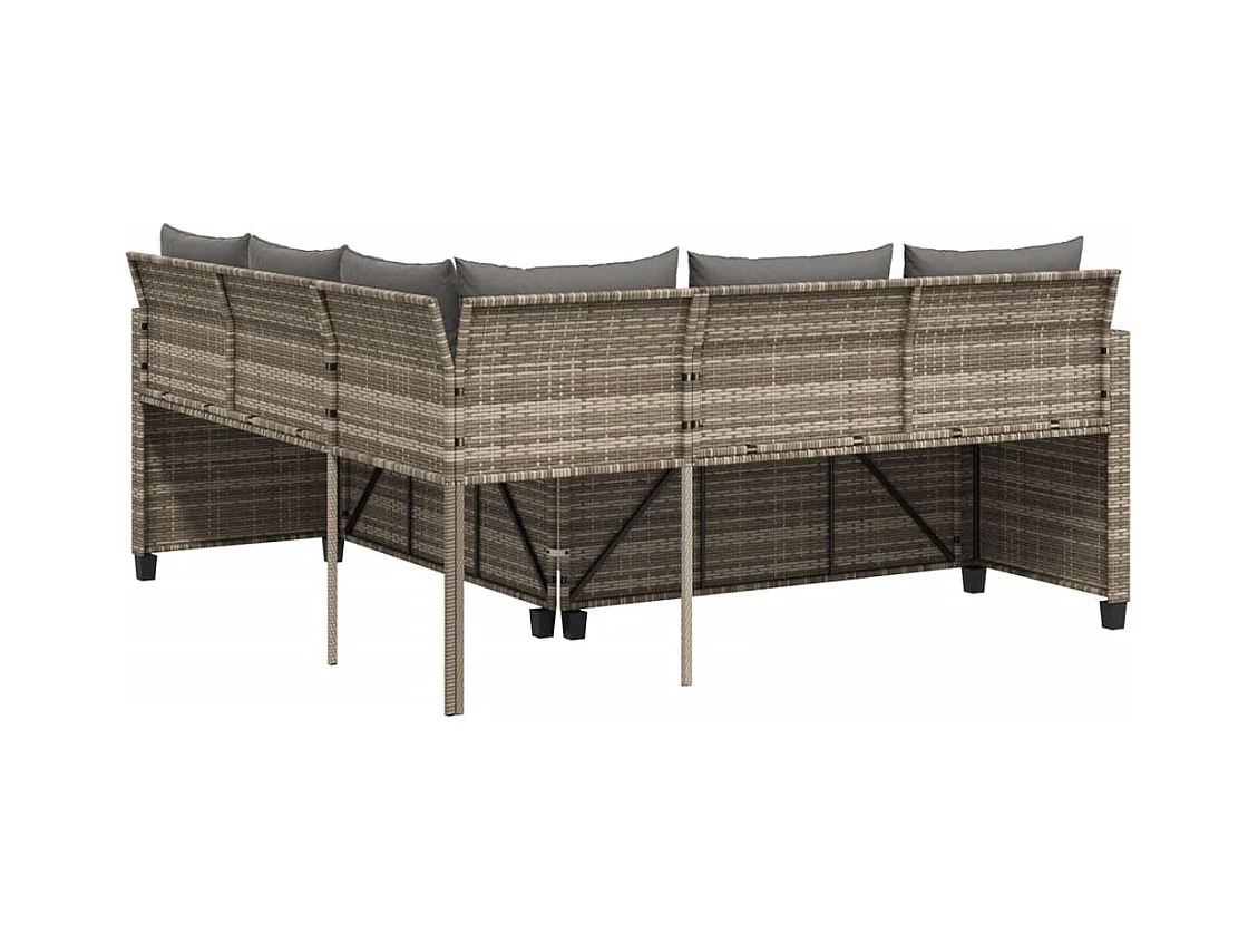 Hoekbank sectioneel met kussens poly rattan grijs BE891446