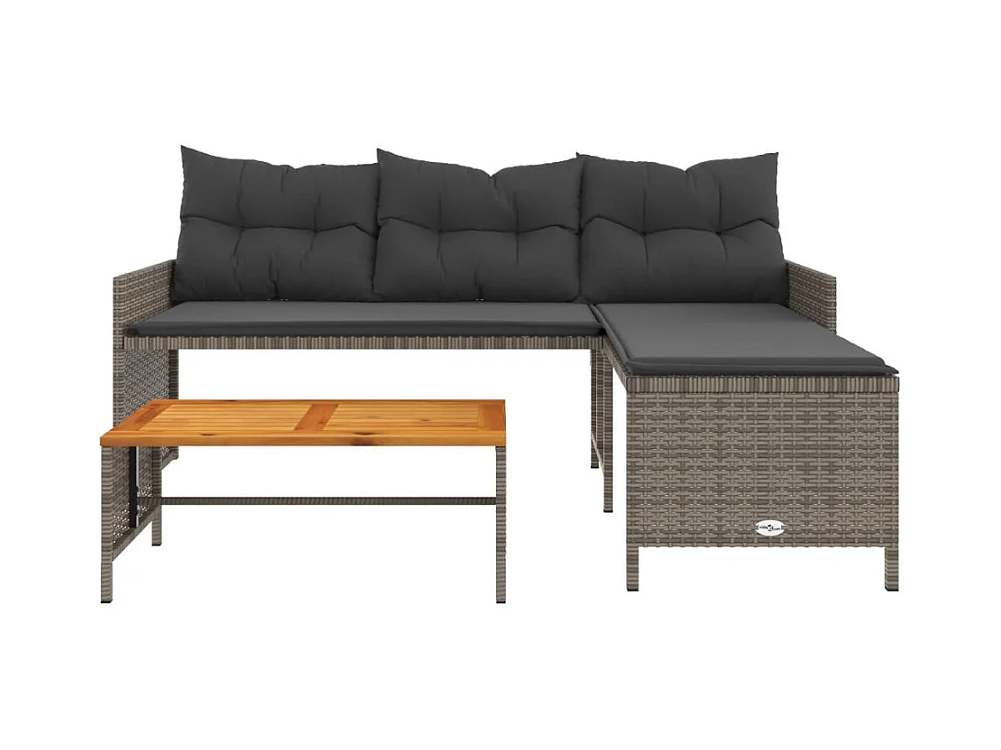 Tuinbank met tafel en kussens L-vormig poly rattan grijs BE135881