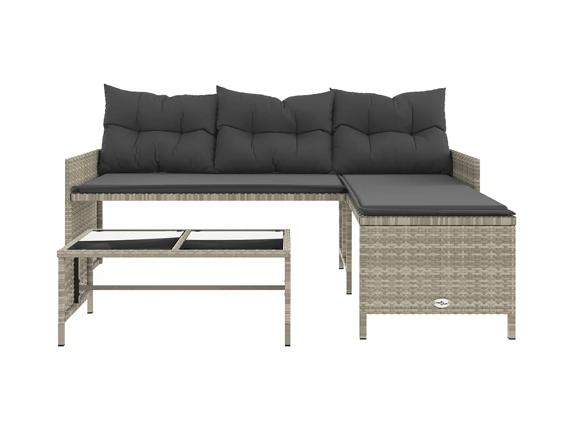 Tuinbank met tafel en kussens L-vormig poly rattan lichtgrijs BE550694