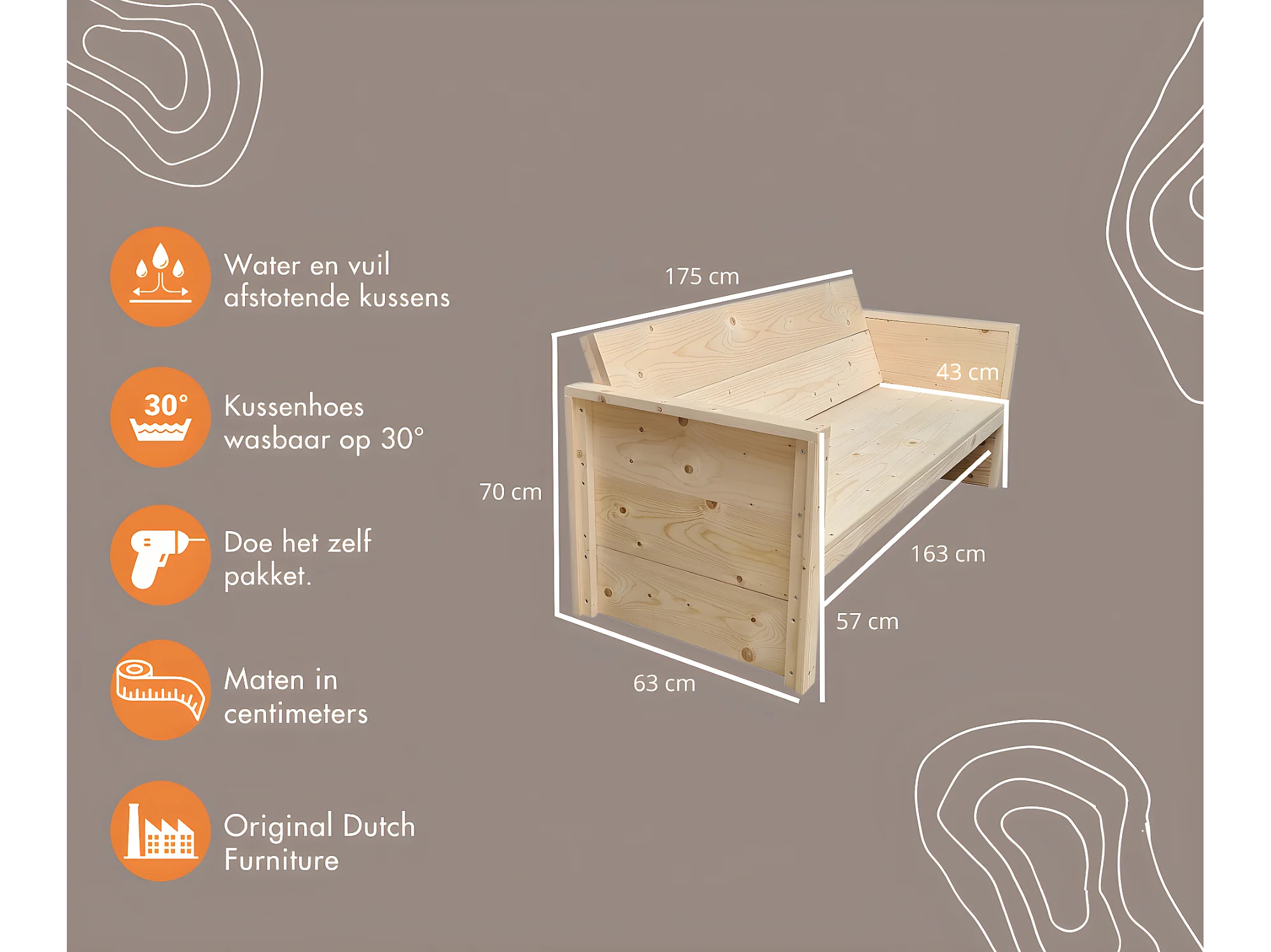 Tuinbank vlieland  - 175Lx72Hx57D cm