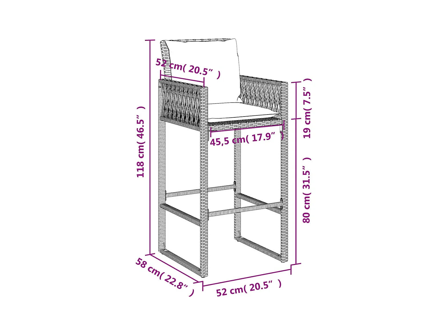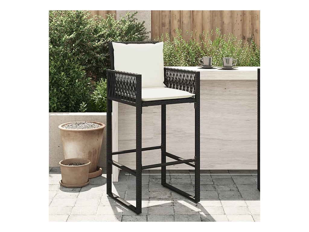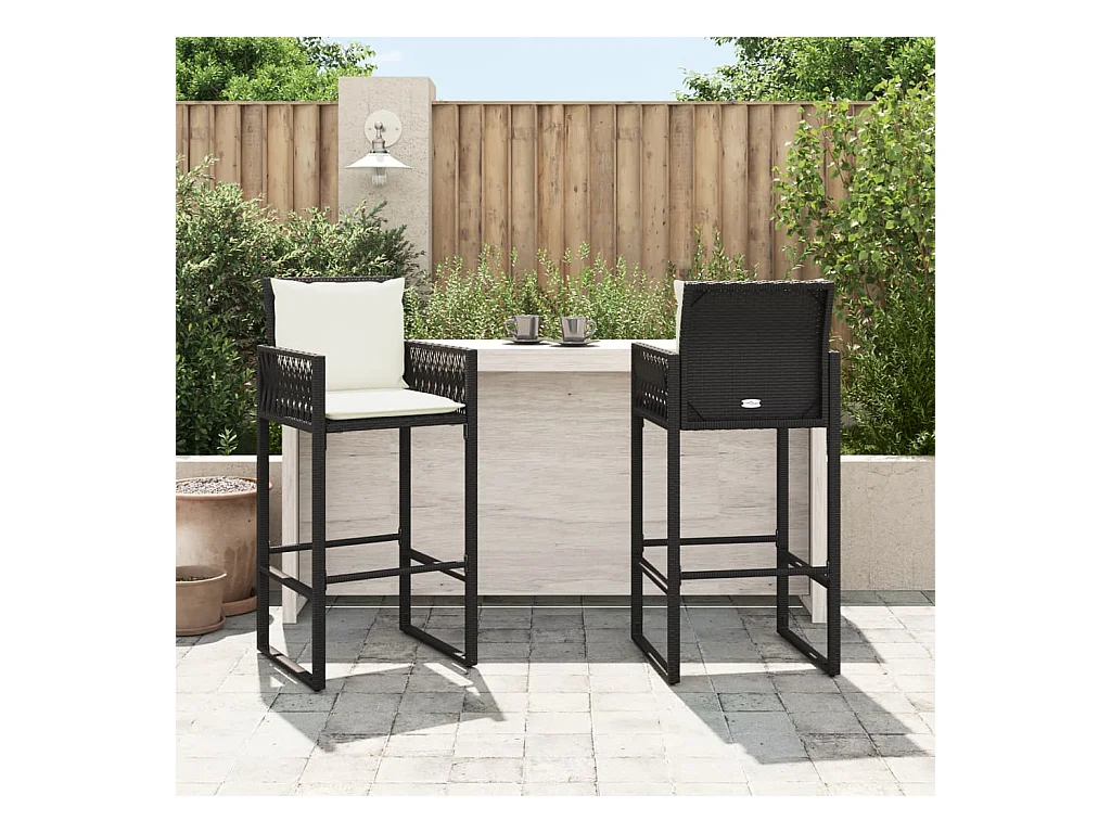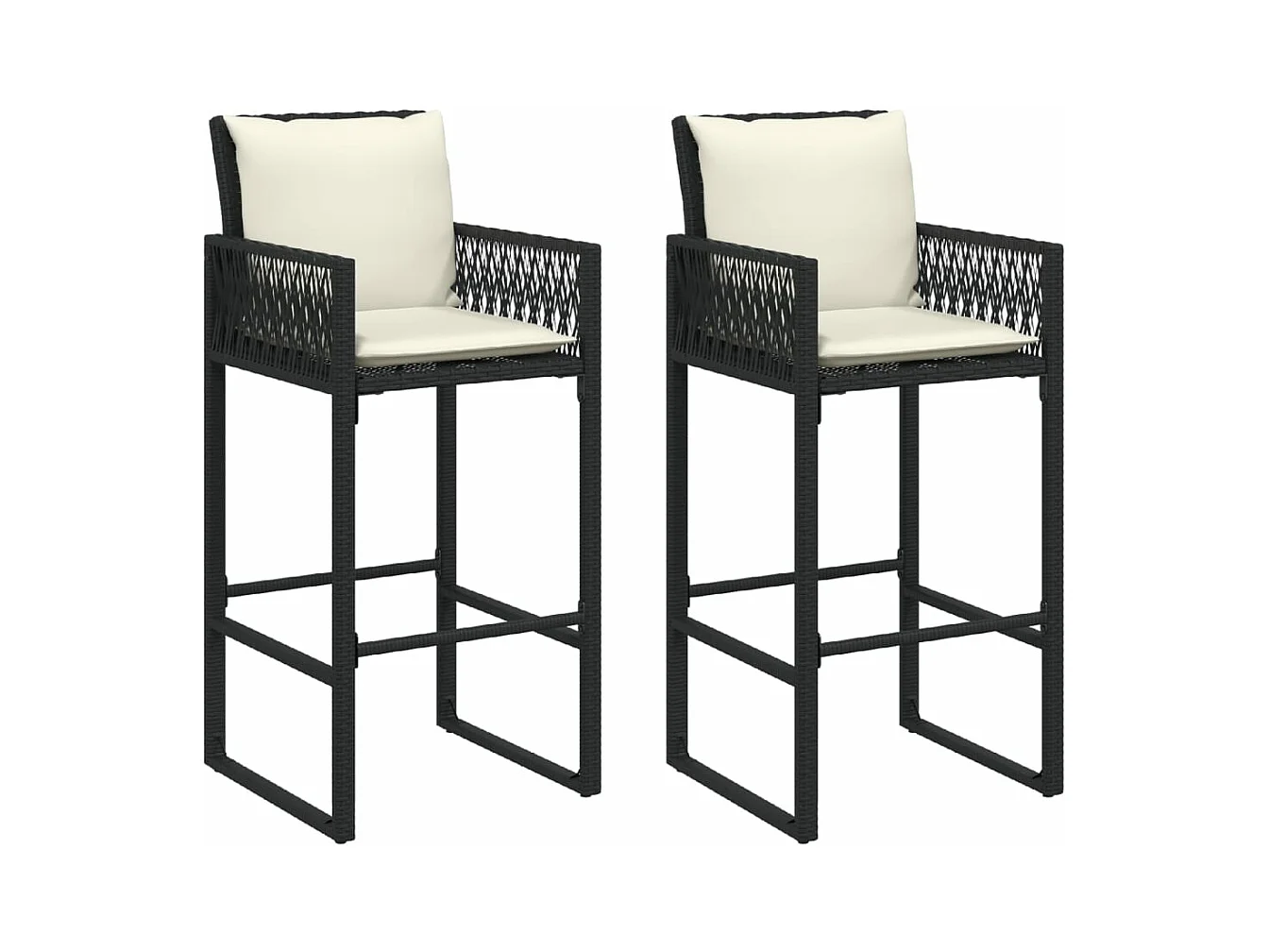 Tuinbarkrukken kussens set van 2 zwart geweven hars