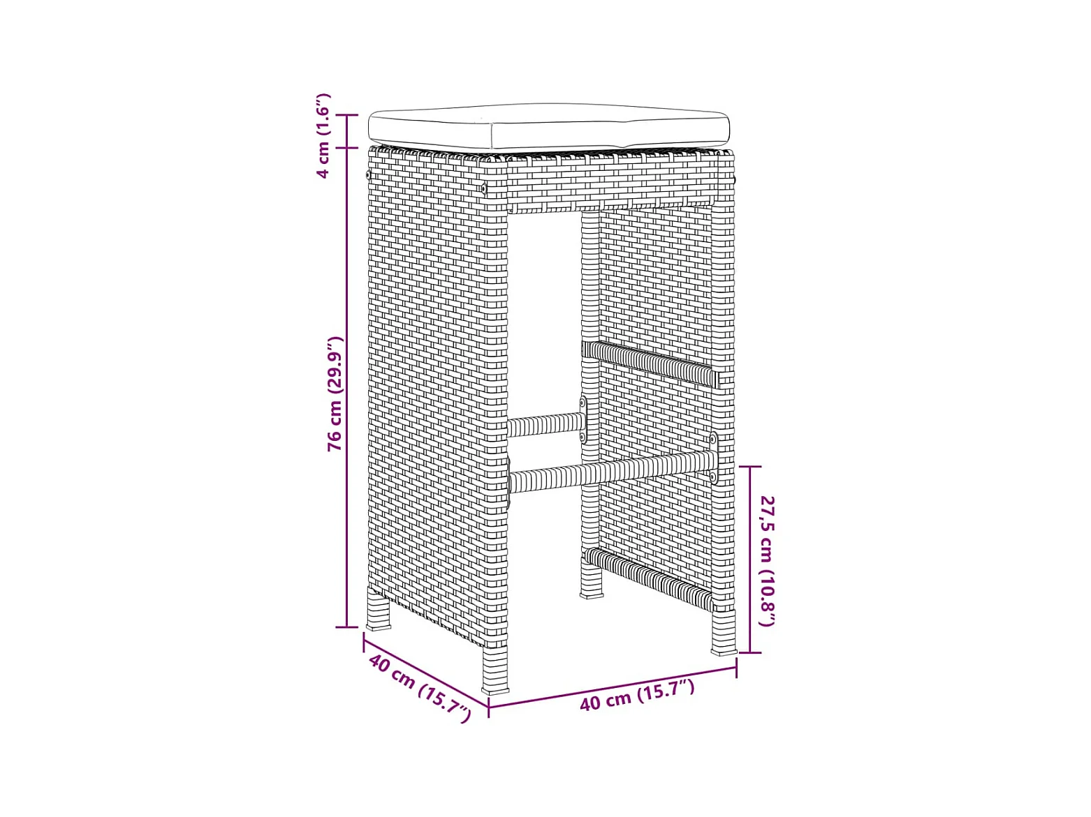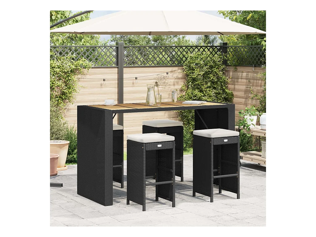 Tuinbarkrukken met kussens 4 stukkenpoly rattan zwart