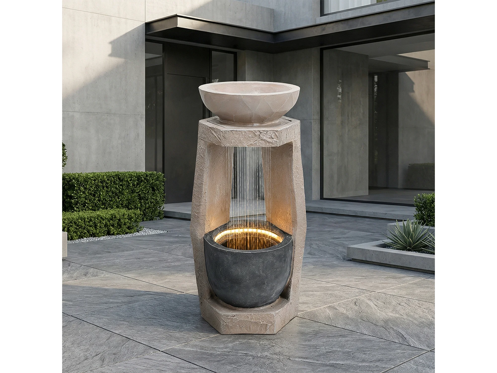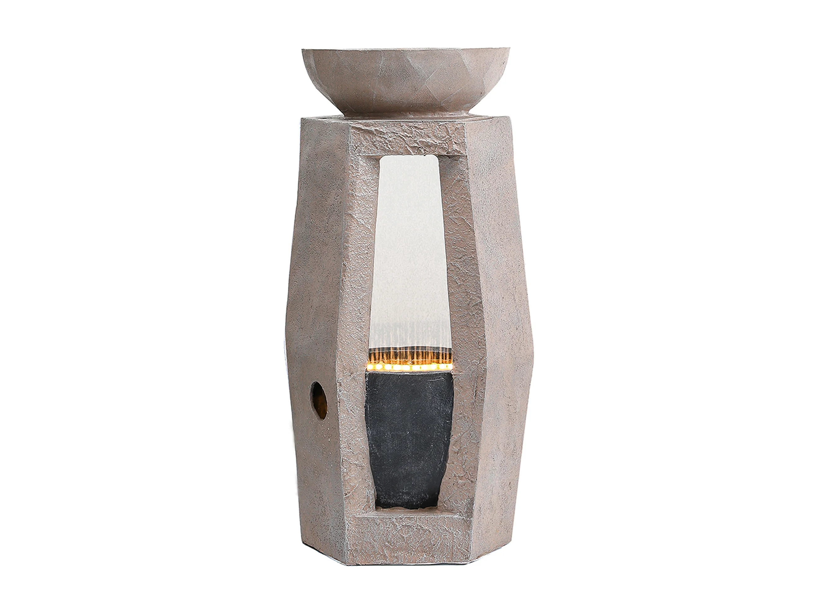 Tuinfontein voor tuin en terras - 36,5 x 36 x 81,5 cm - met LED's + waterpomp - Kunsthars - beige