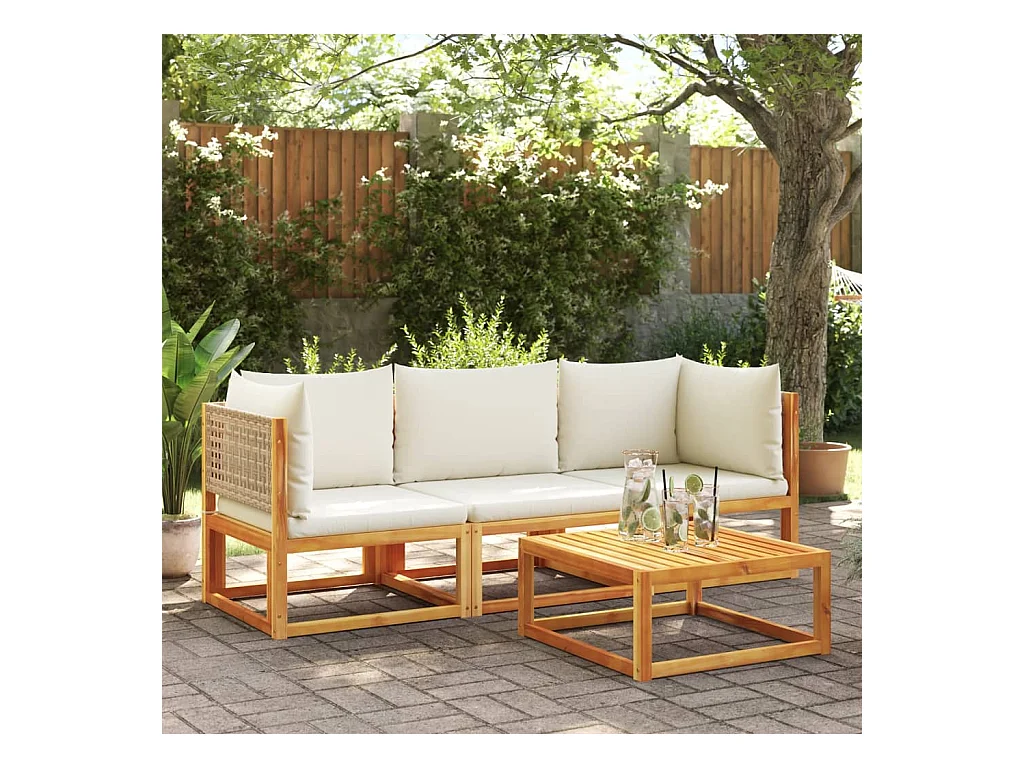 Tuinhoekbank met kussens massief acaciahout BE242653
