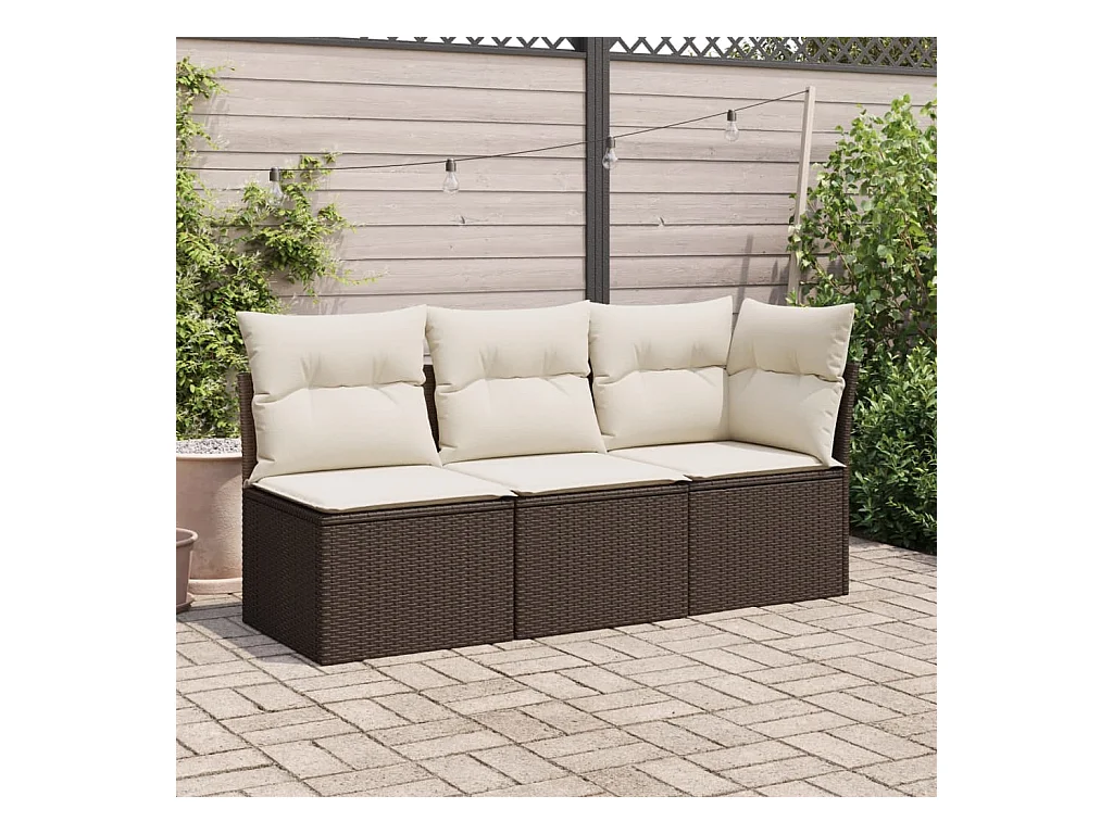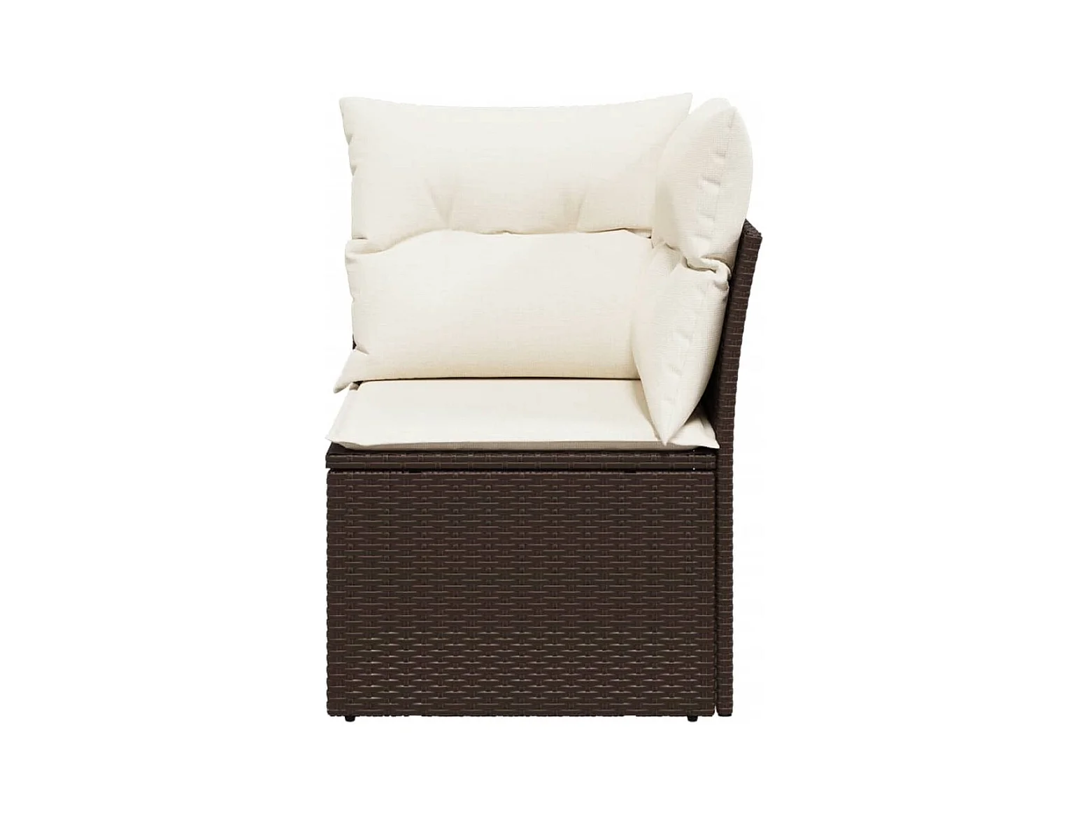 Tuinhoekbank met kussens poly rattan bruin BE742489