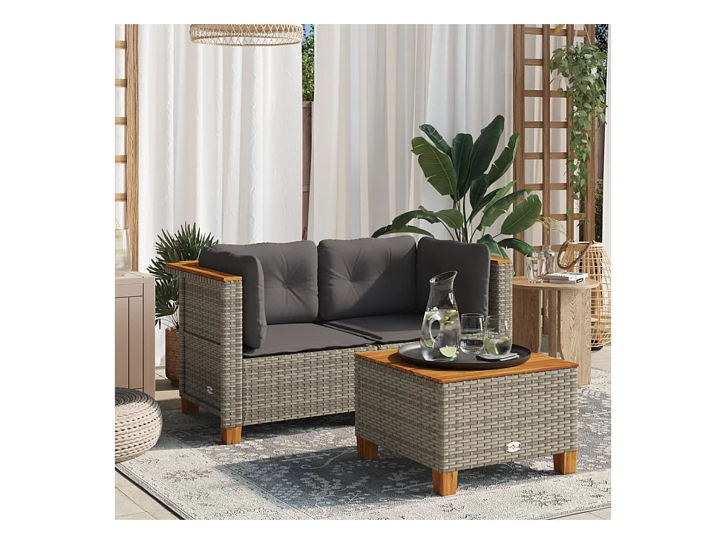 Tuinhoekbanken 2 st met kussens poly rattan grijs BE772907