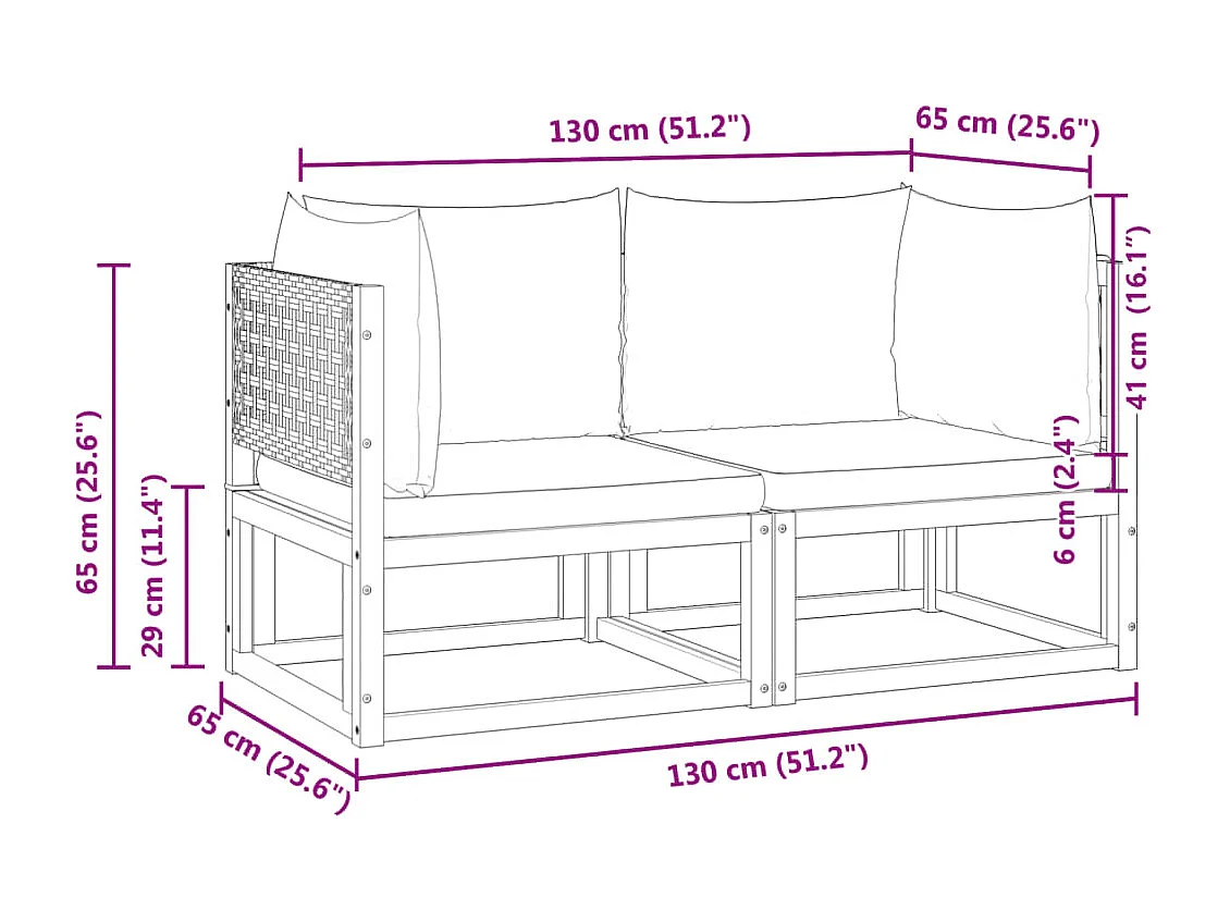 Tuinhoekbanken met kussens 2 st massief acaciahout