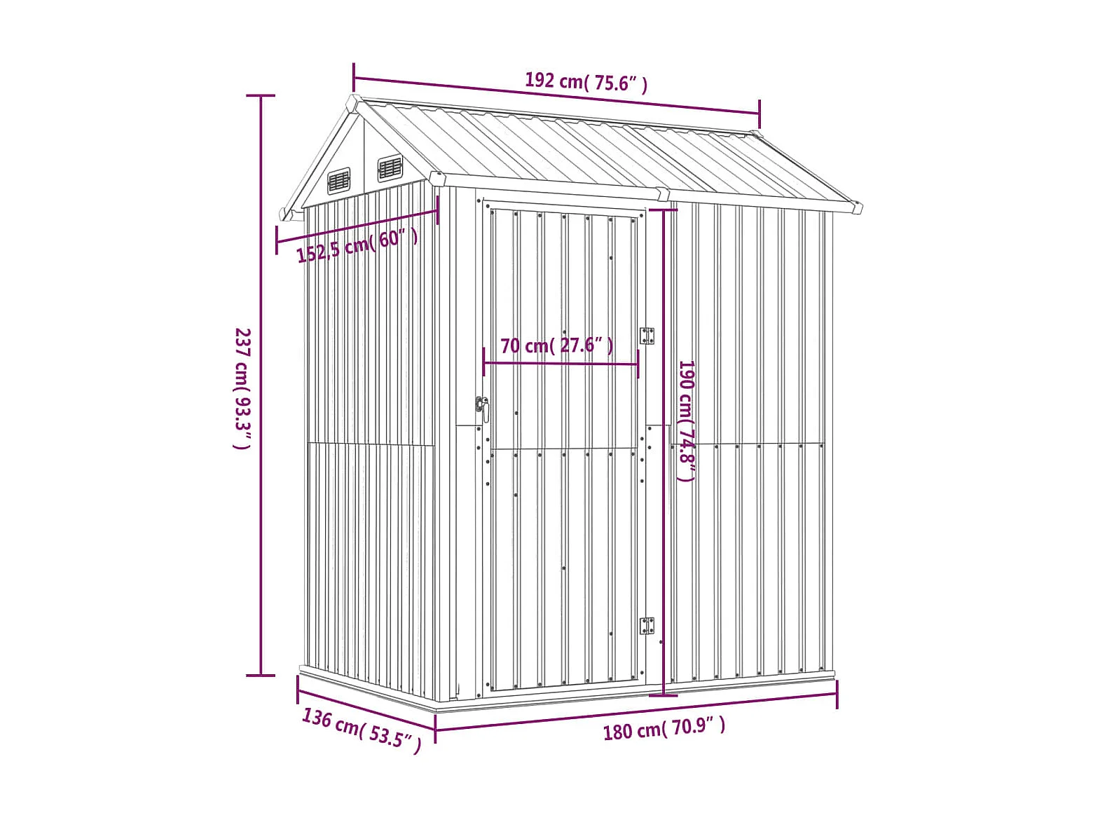 Tuinhuis antraciet 192x152,5x237 cm gegalvaniseerd staal
