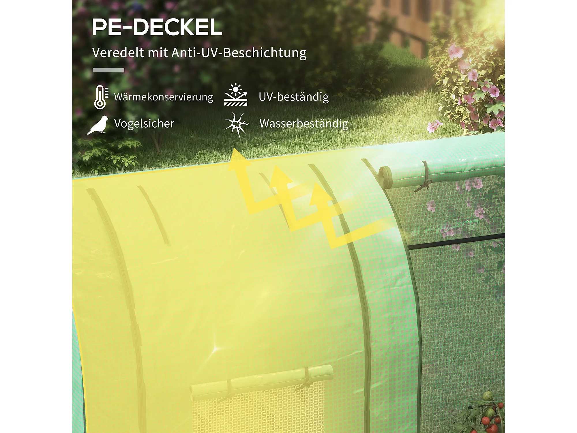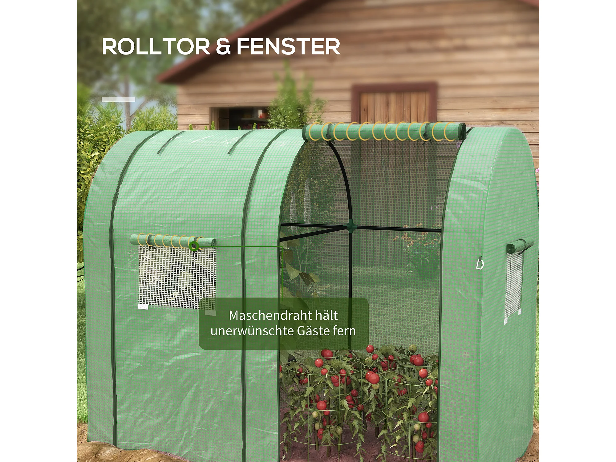 Tuinkas met 2 roldeuren, ramen, UV-bescherming, PE, groen (185x94x150 cm)