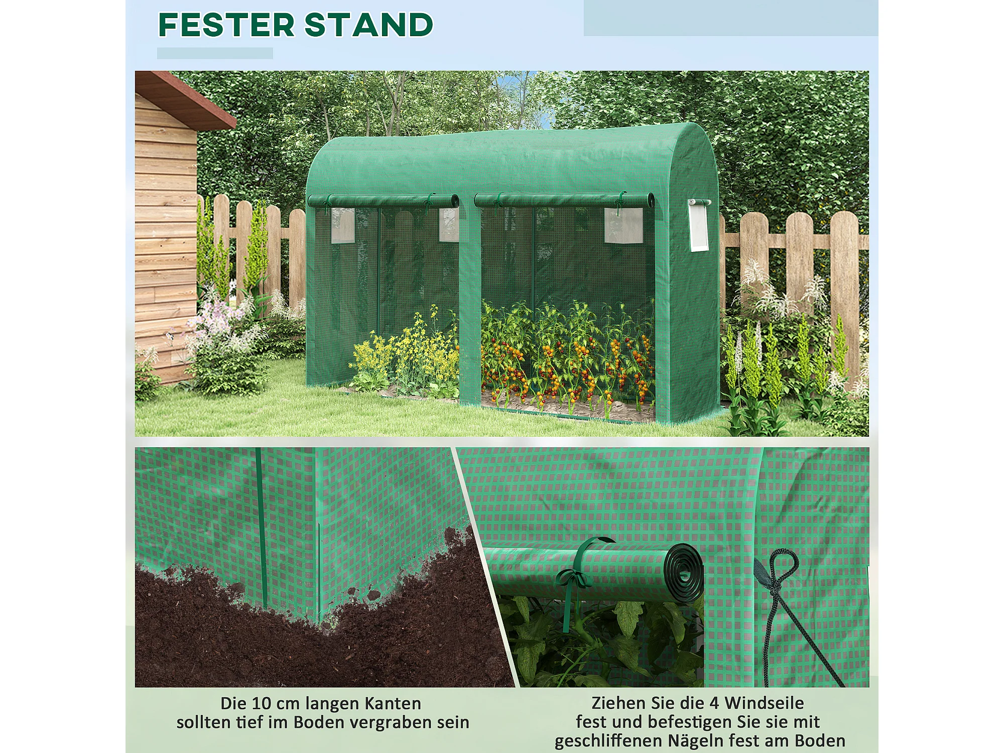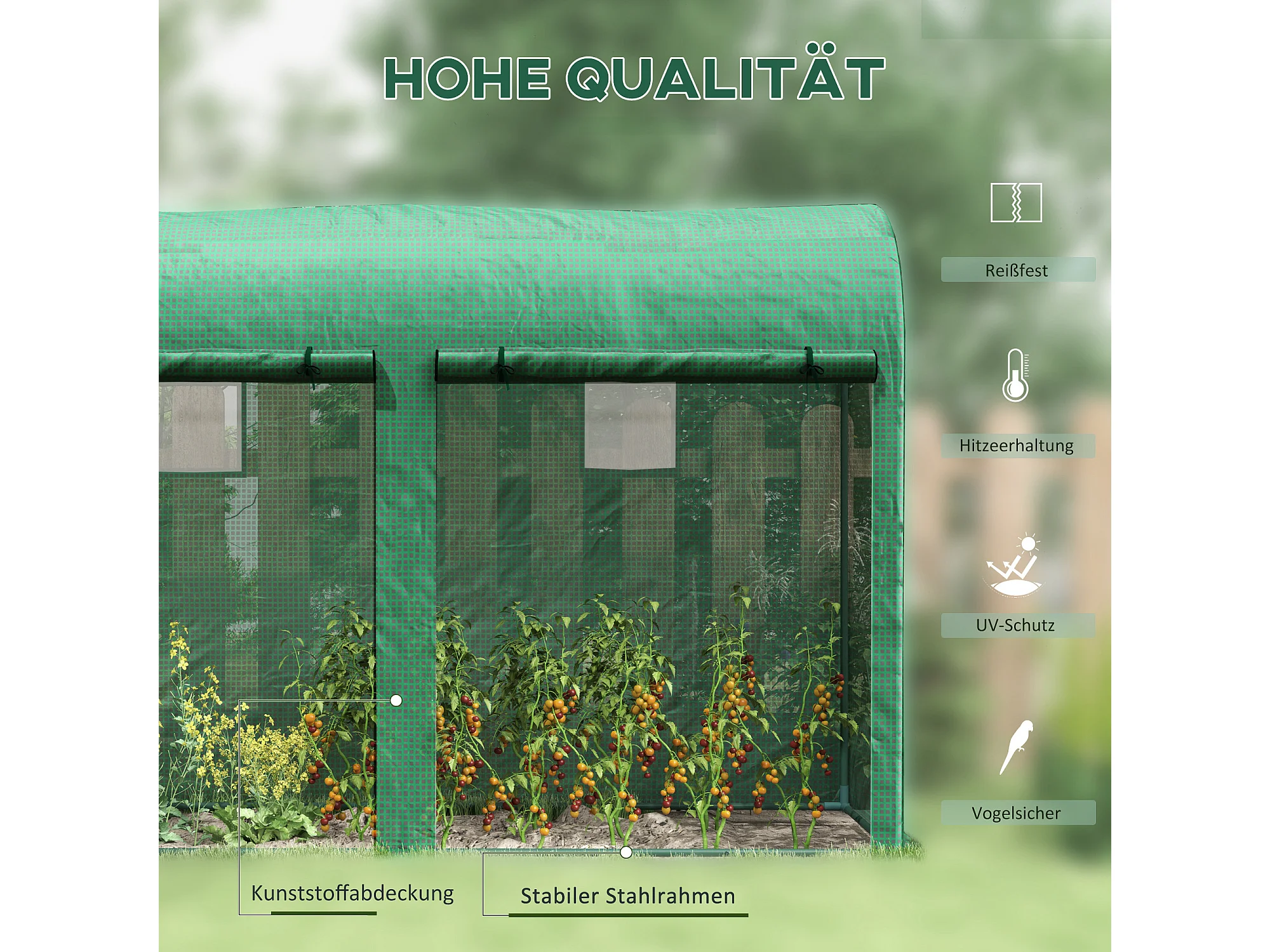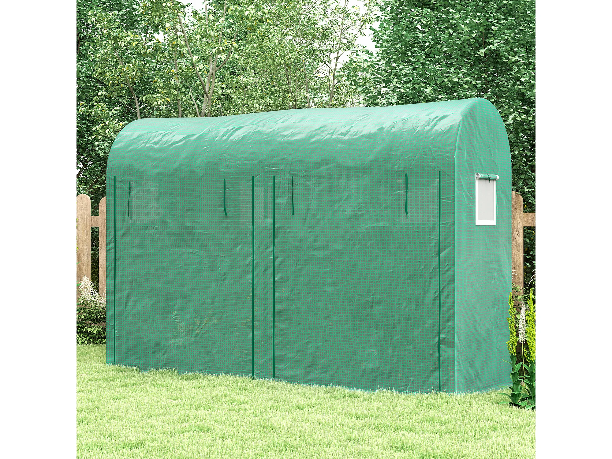 Tuinkas met ramen en deur, staal, PE, 300x100x200 cm, groen
