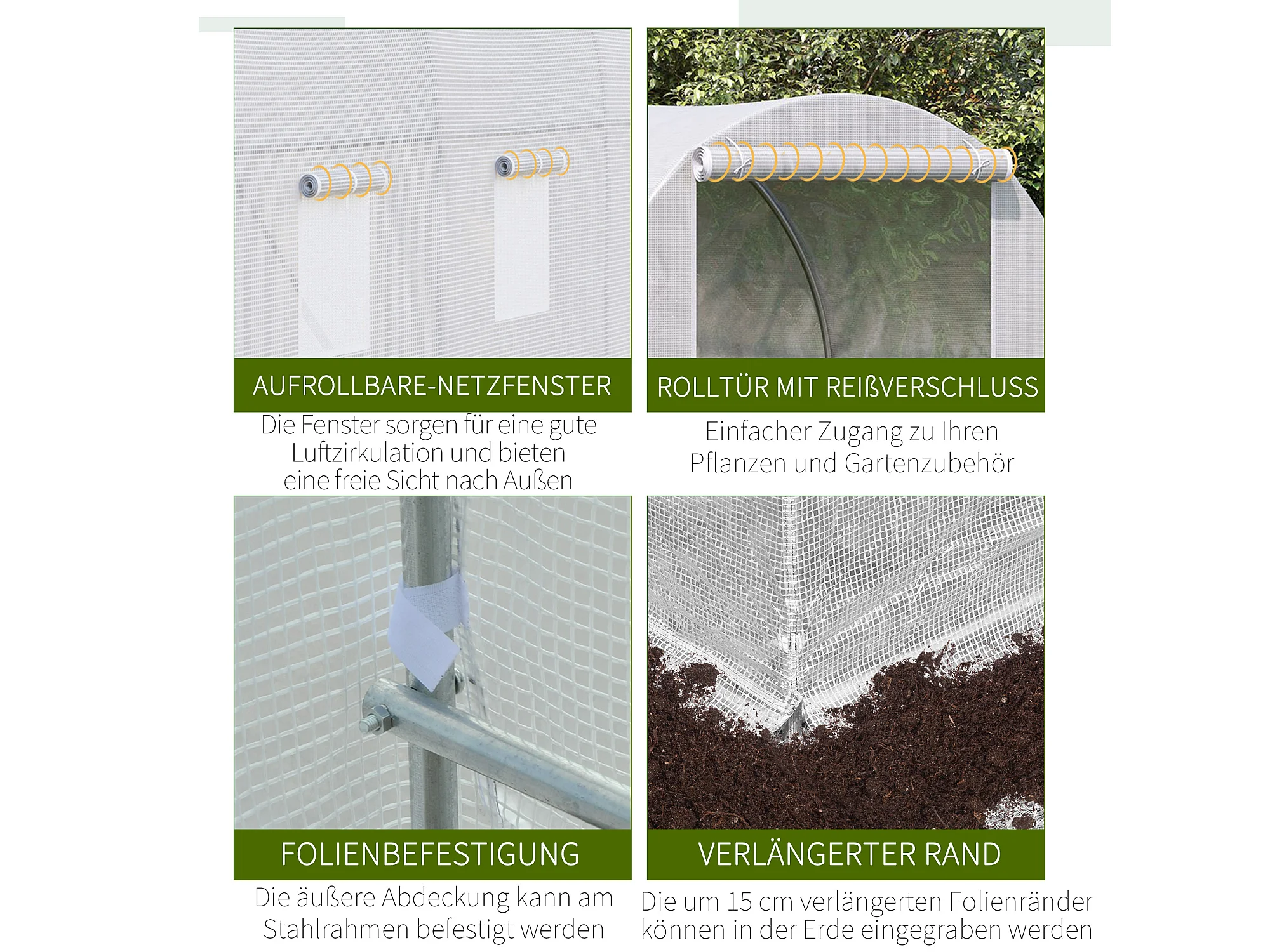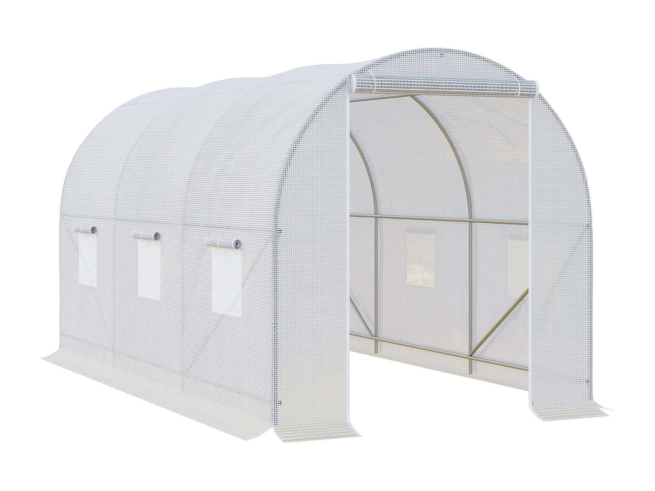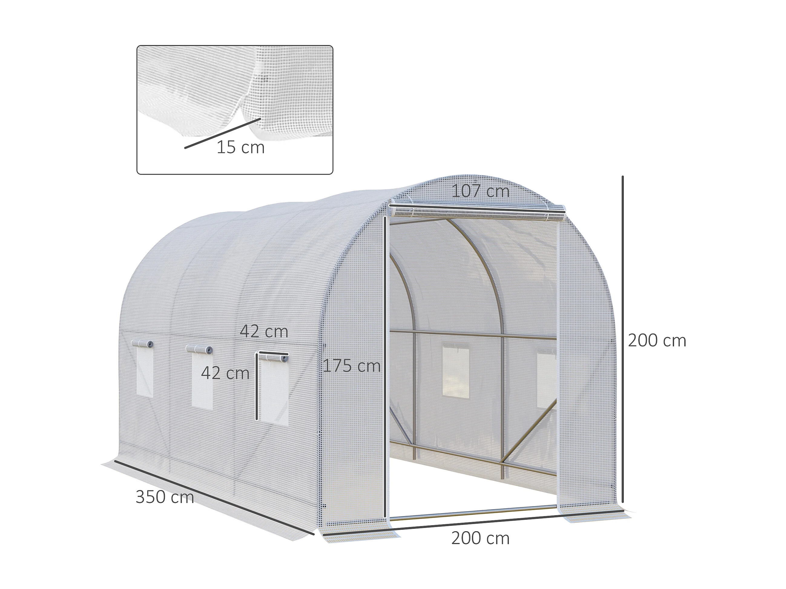 Tuinkas met ramen en deur, stevig metalen frame, transparante PE-afdekking, wit (350x200x200cm)