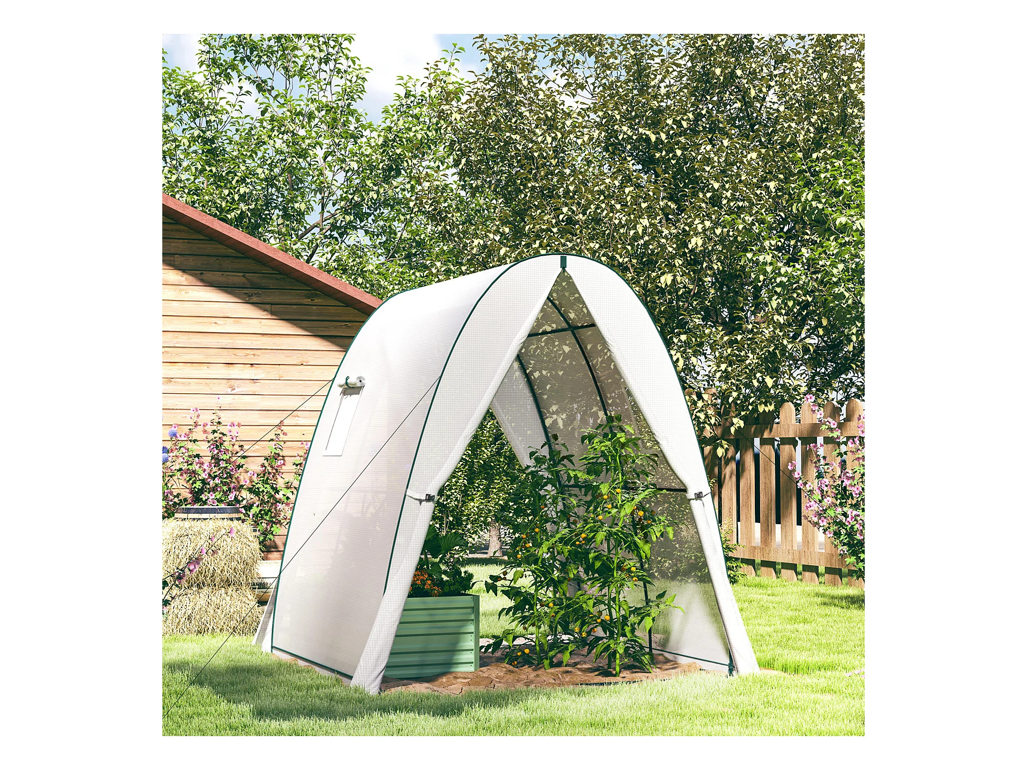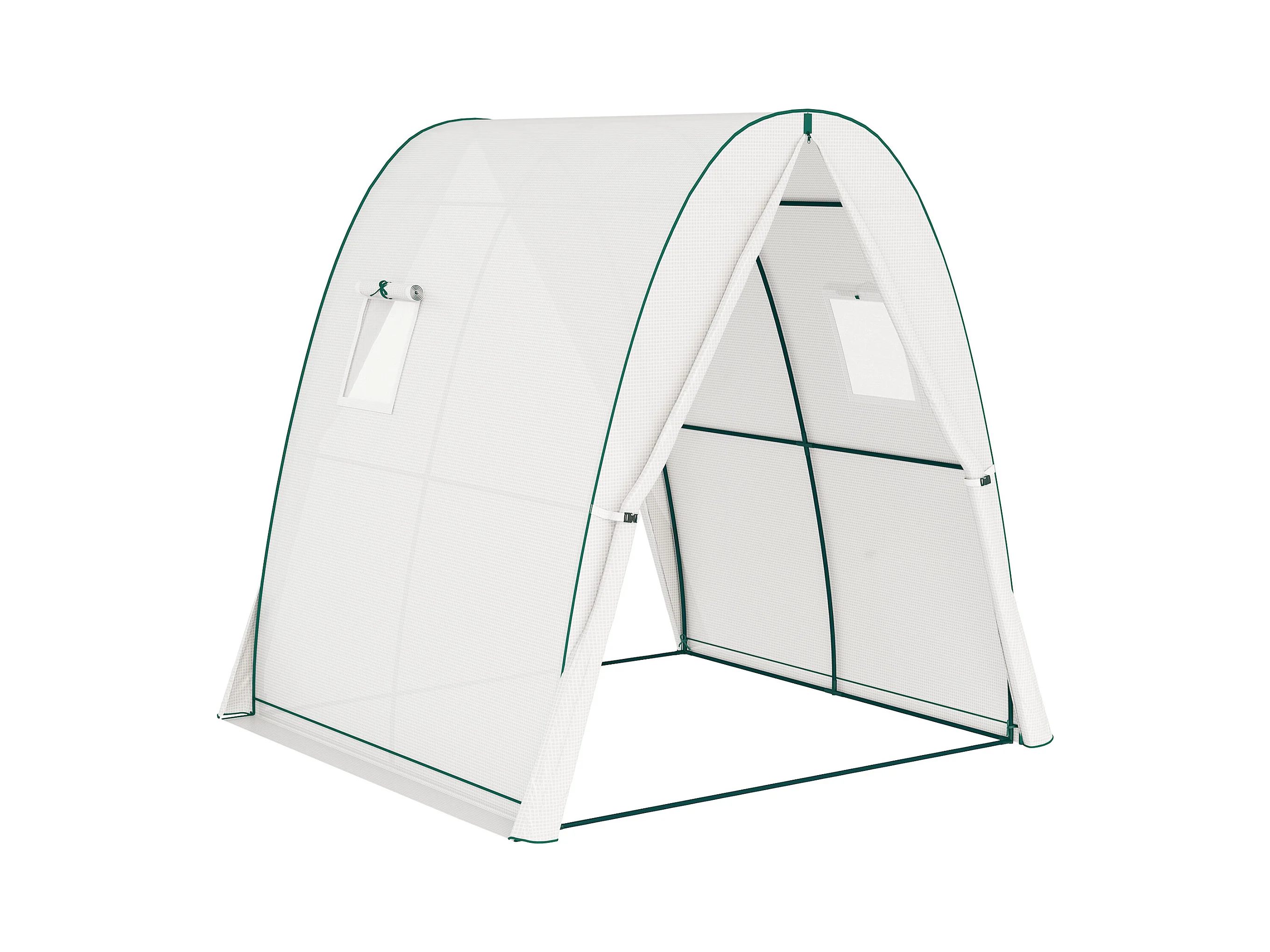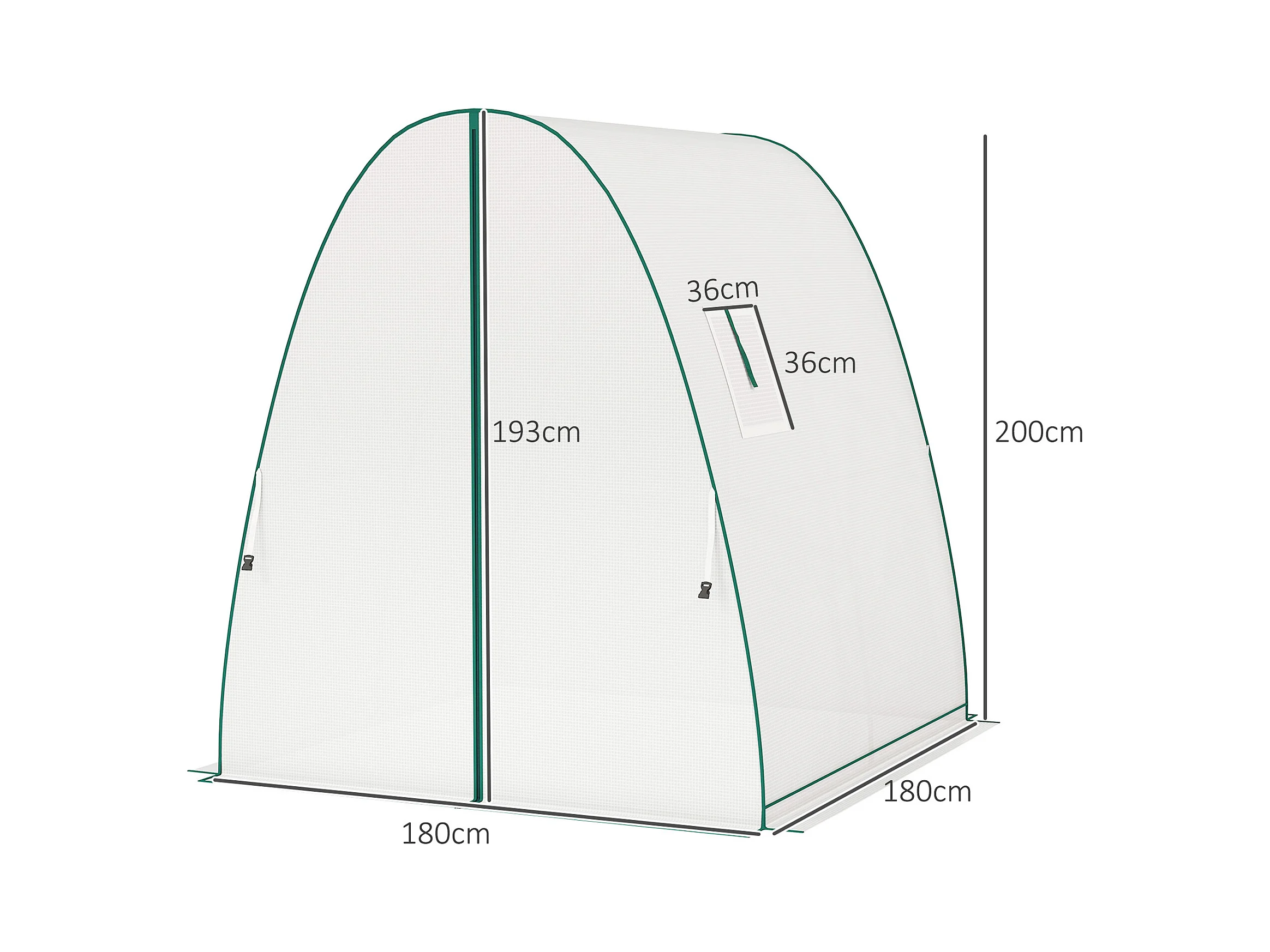 Tuinkas met roldeur, 2 ramen, versterkt doek, stalen frame, wit (180x180x200cm)