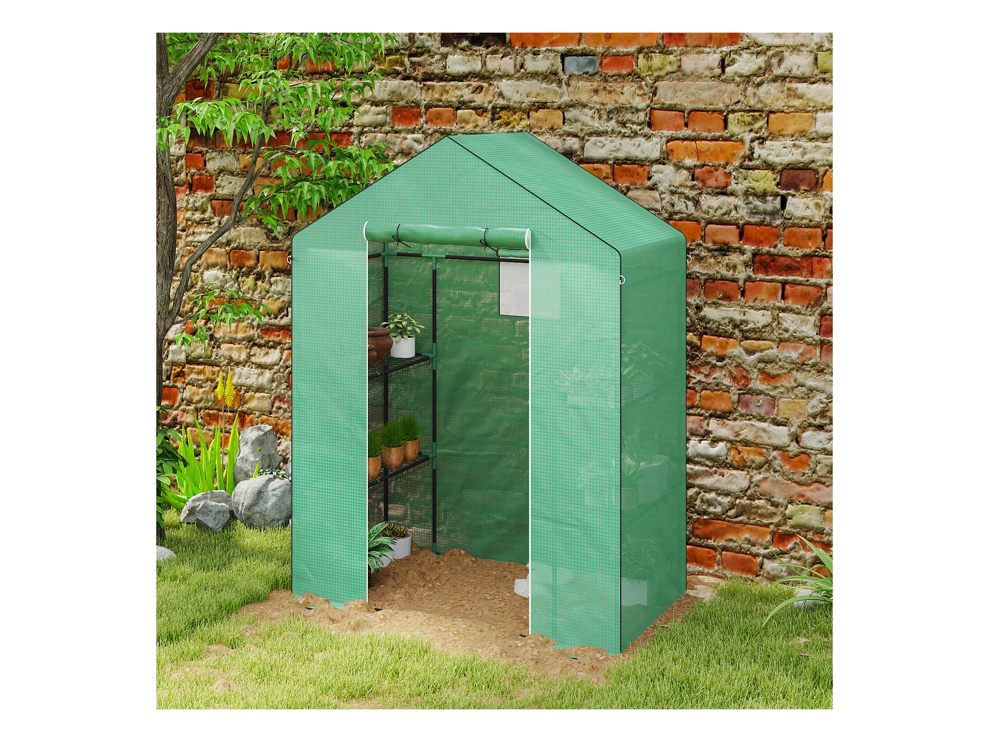 Tuinkas met roldeur, ramen, versterkt doek, staal, groen (180x180x200cm)
