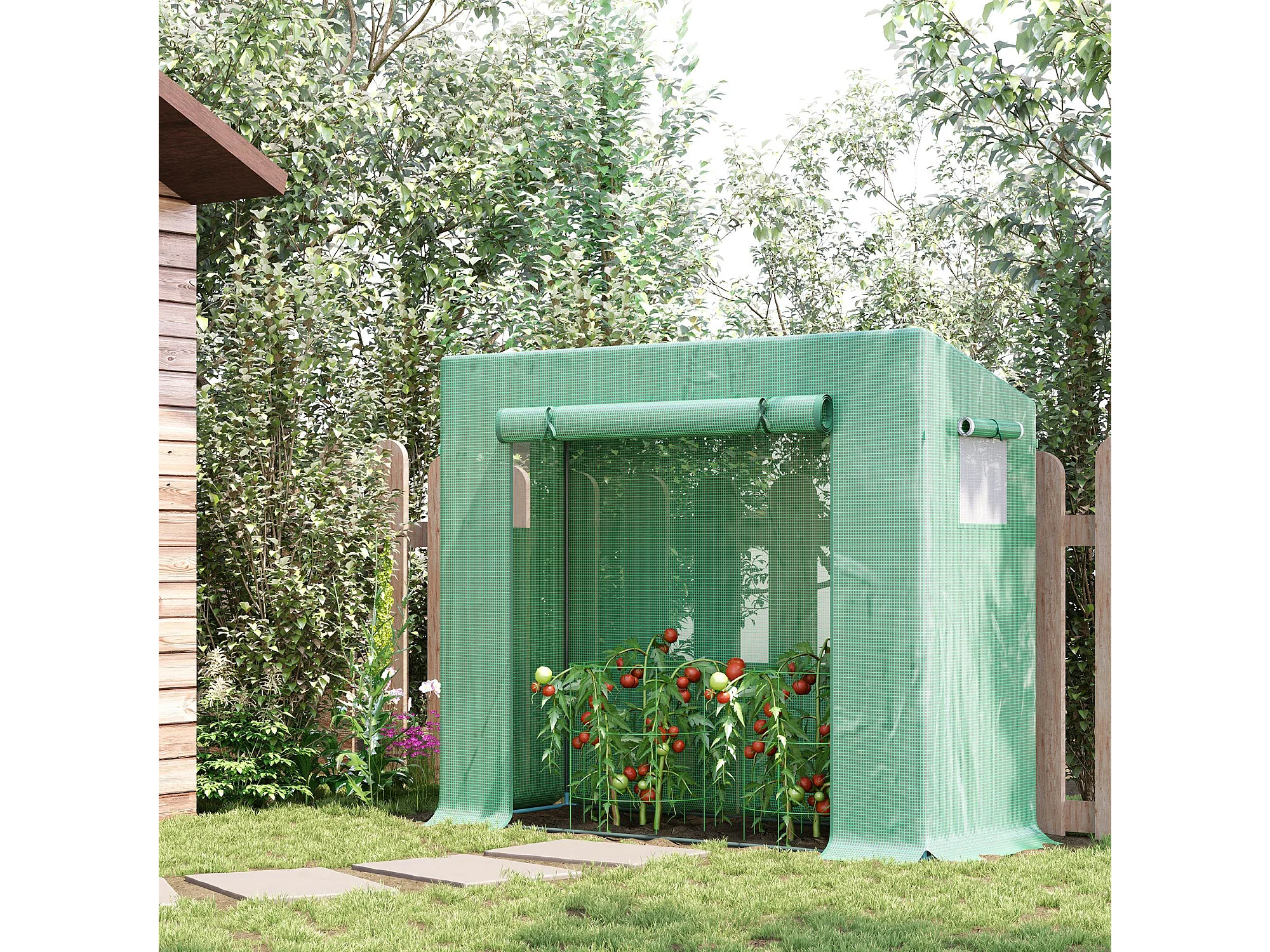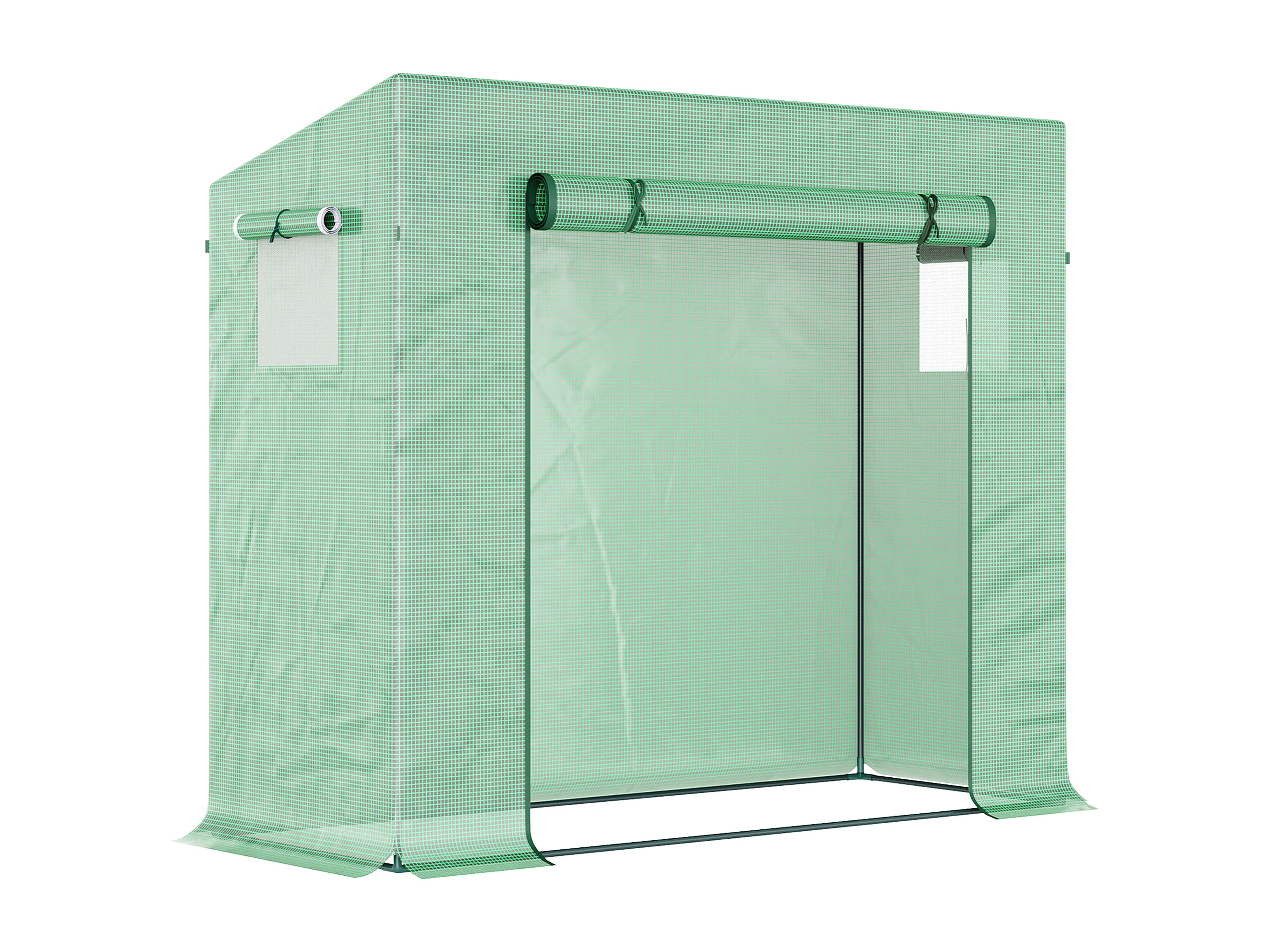 Tuinkas met roldeur, versterkte PE-folie, stalen frame, groen (200x76x168cm)