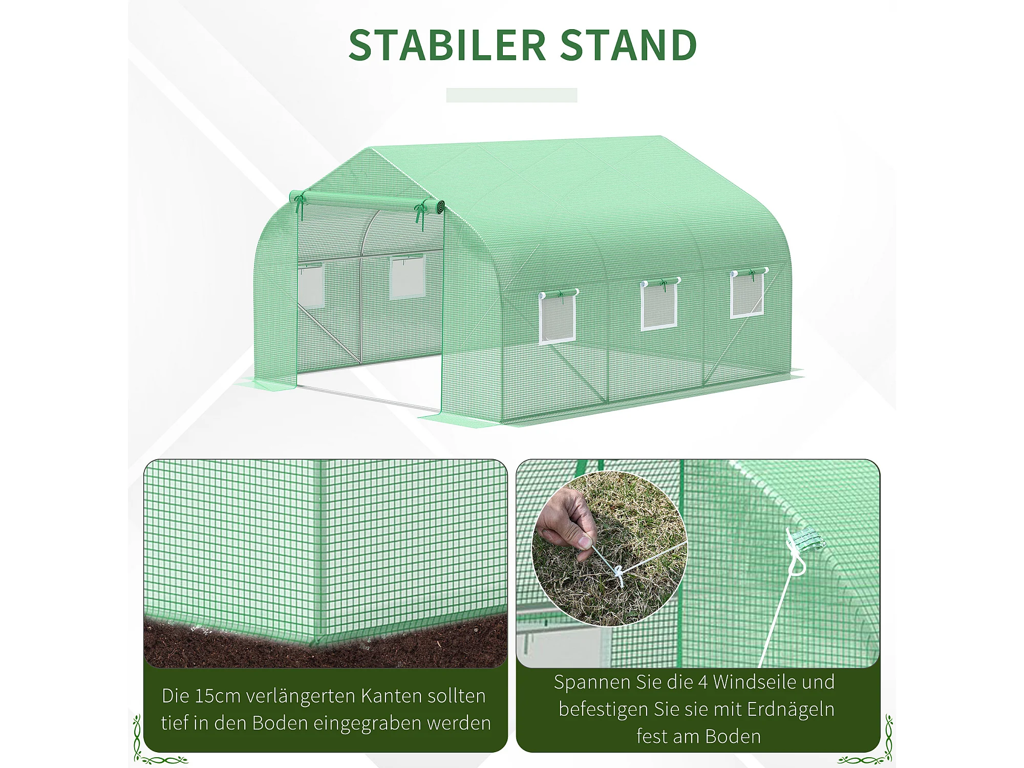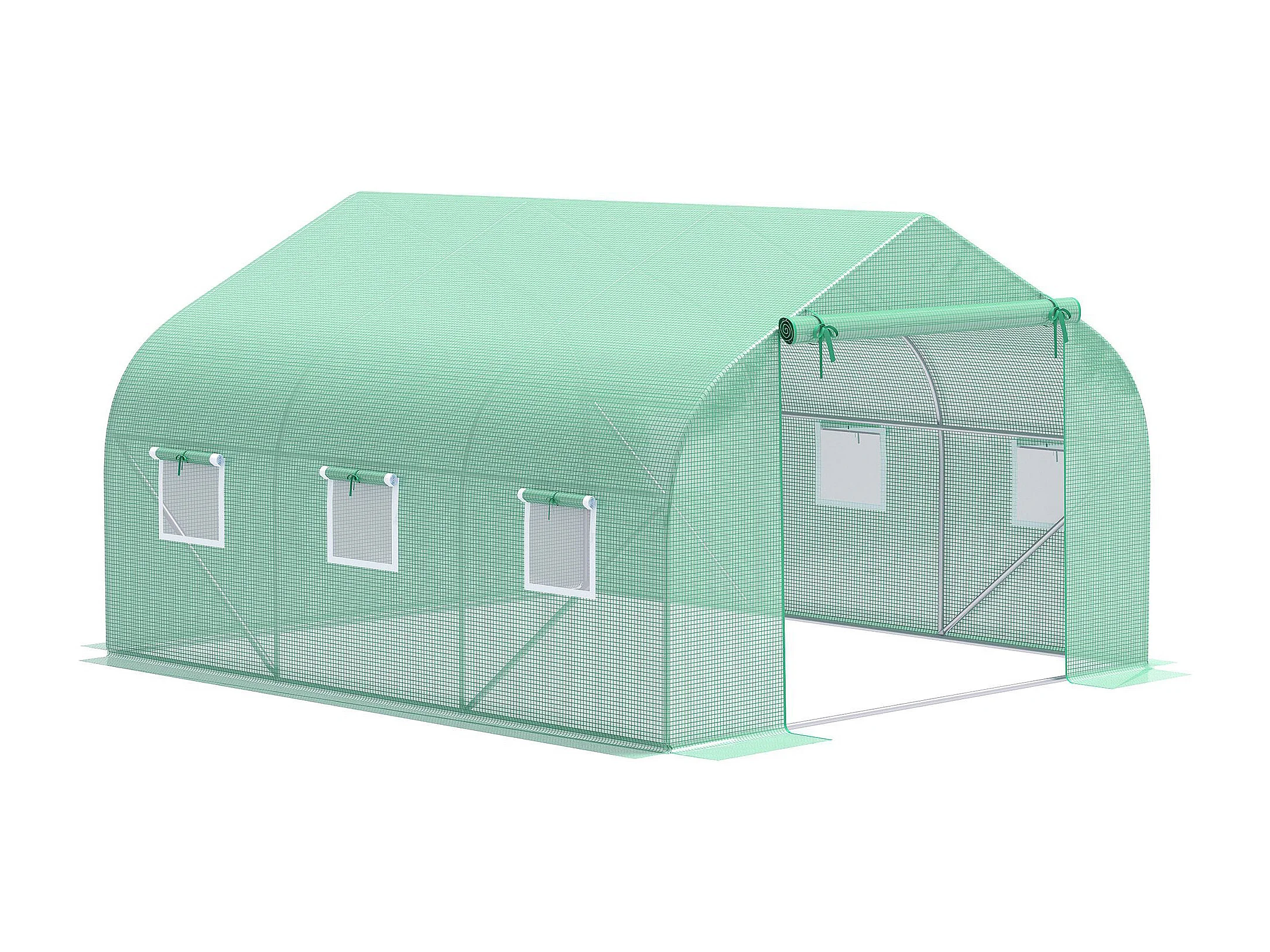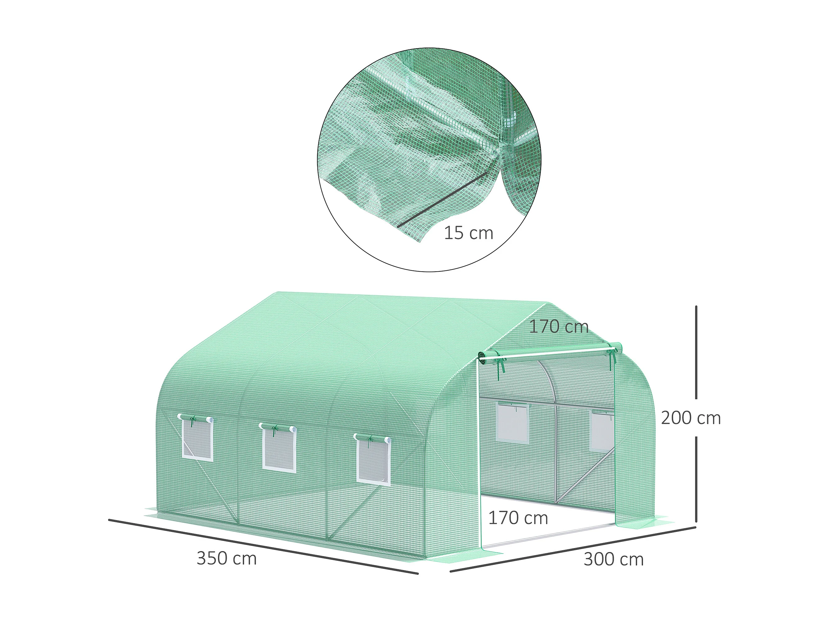 Tuinkas, schuin dak, uv-bestendig kunststof, metalen frame, 350x300x200 cm