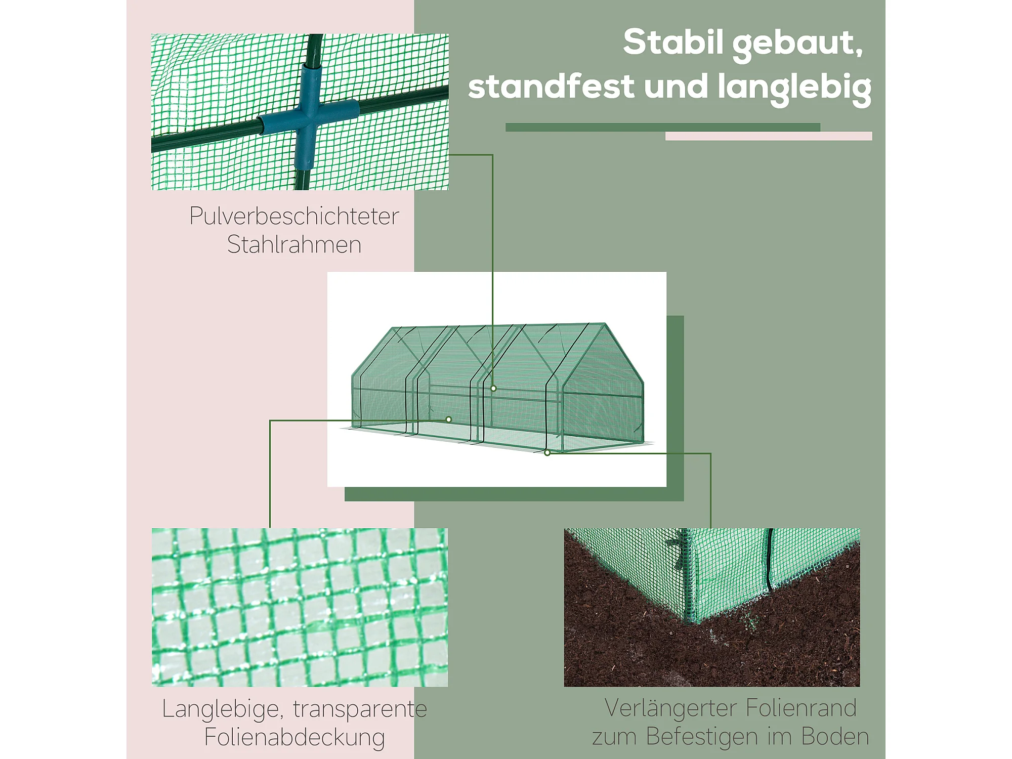 Tuinkas voor planten, gemaakt van staal, weerbestendig PE, groen (270x90x90 cm)