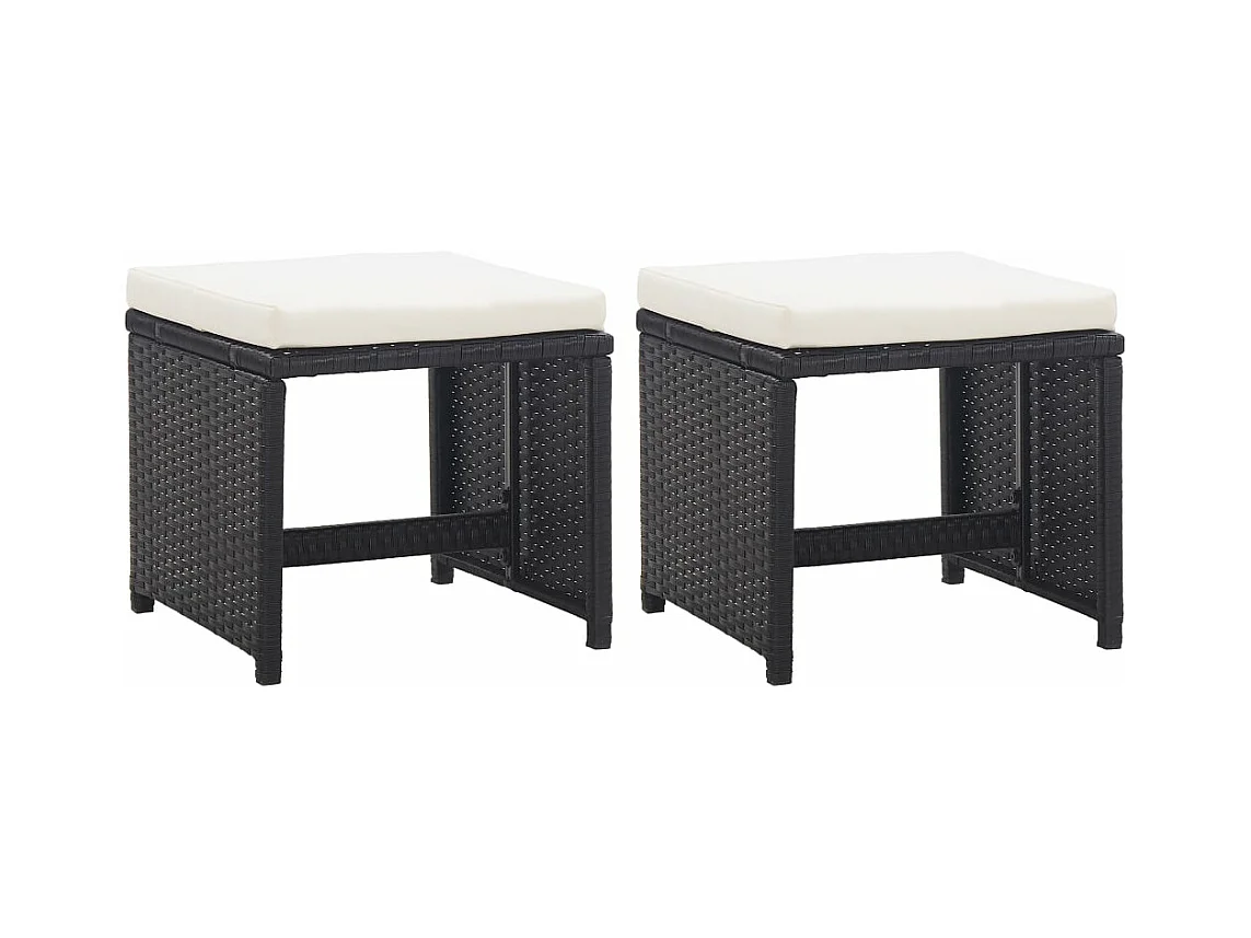 Tuinkrukken 2 st met kussens poly rattan zwart