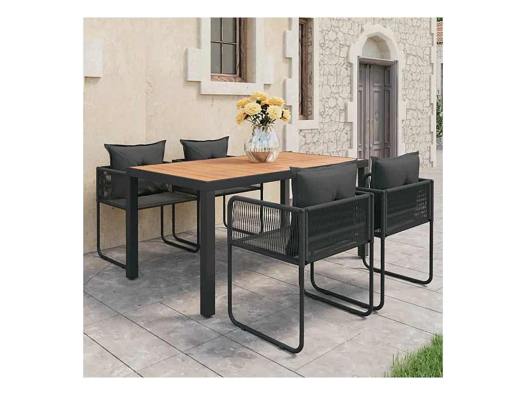 Tuinmeubelen 5 stuks PVC Hars vlechtwerk Zwart en bruin