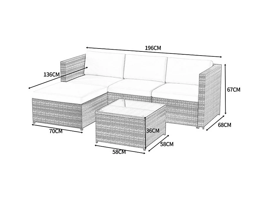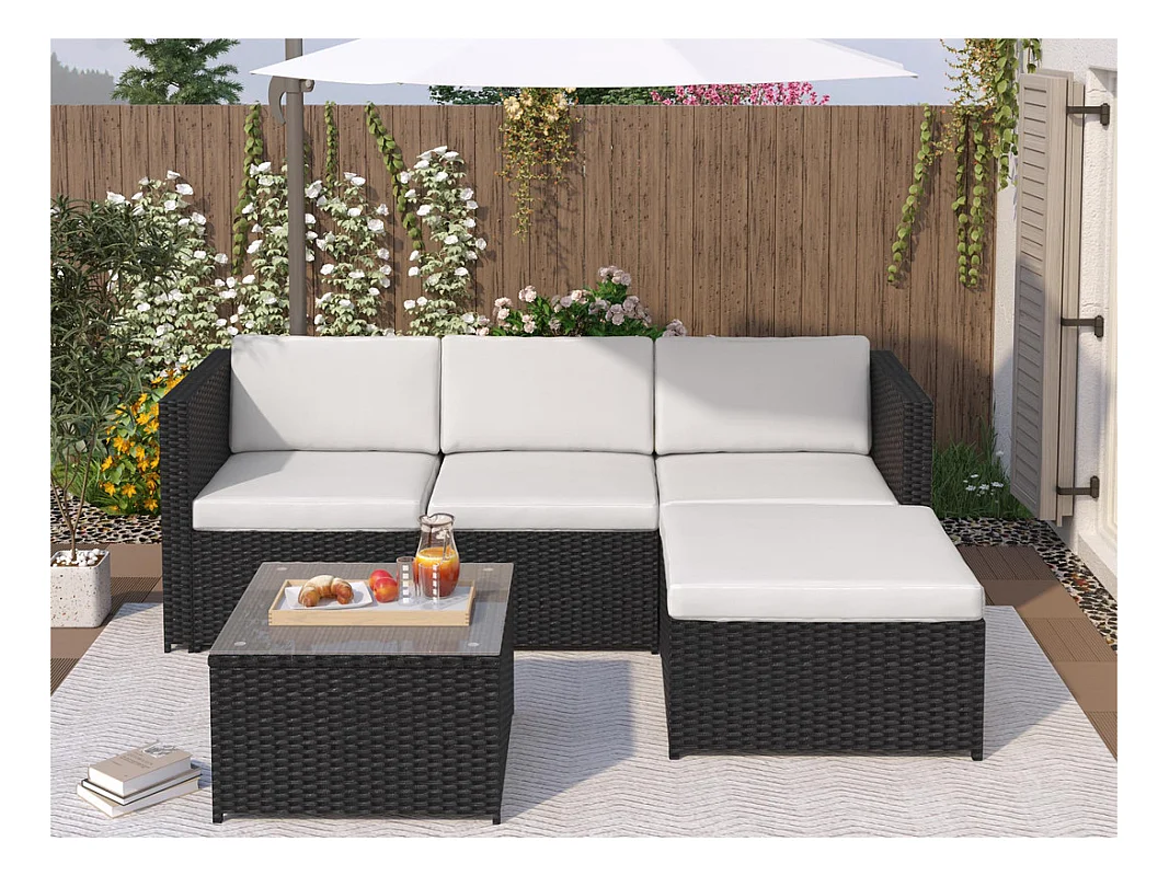 Tuinmeubelen in geweven hars - Buitenhoekbank met salontafel - 4 plaatsen - Zwart