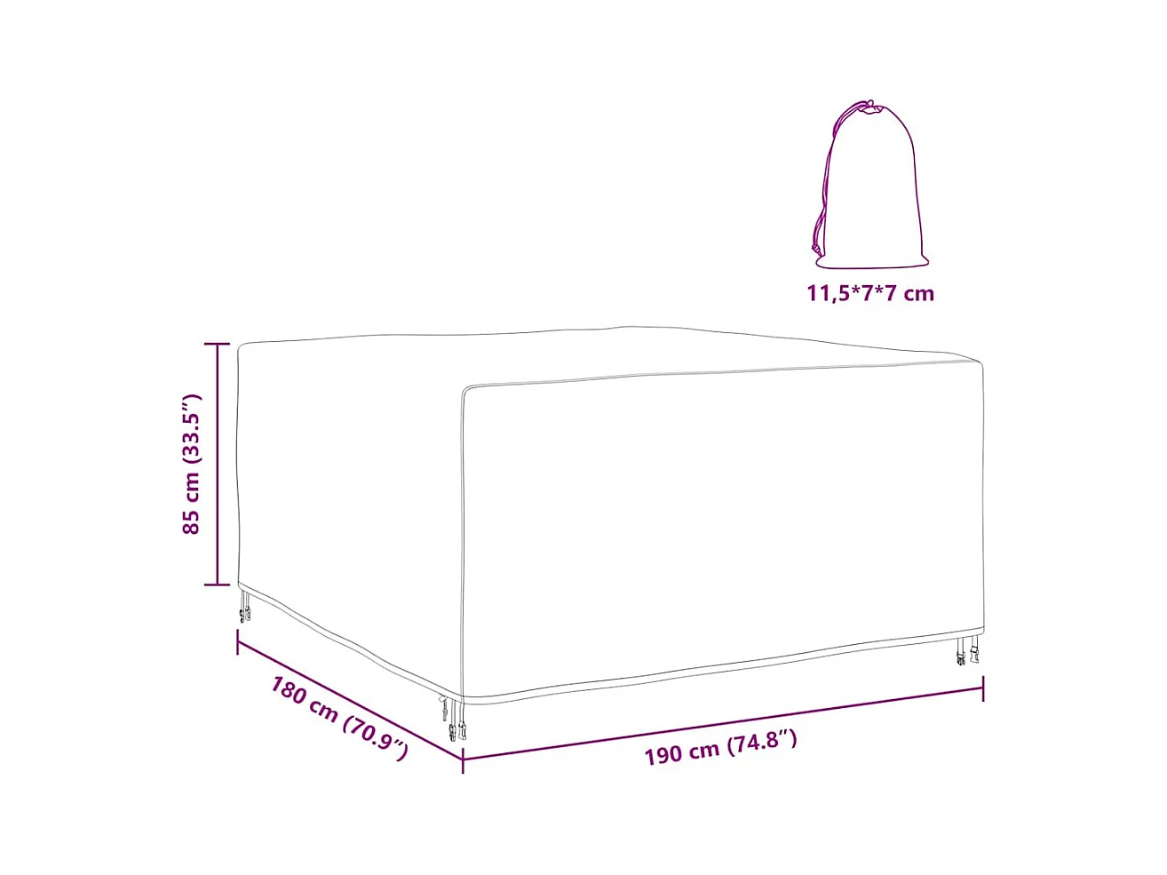 Buitenmeubelhoes Zwart 220 x 190 x 85 cm 210D