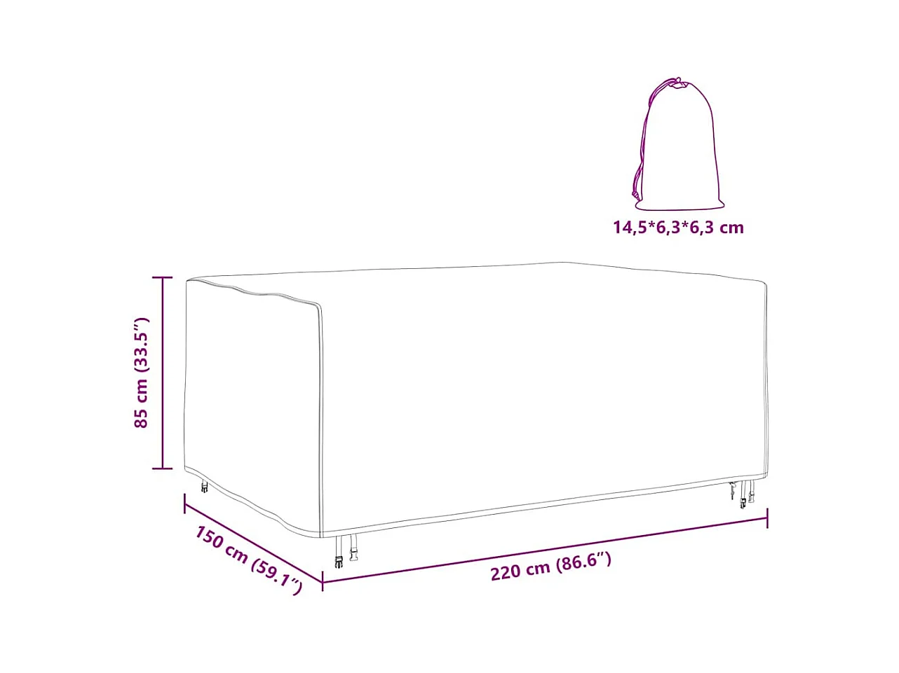 Tuinmeubelhoes Zwart 220 x 150 x 85 cm 600D
