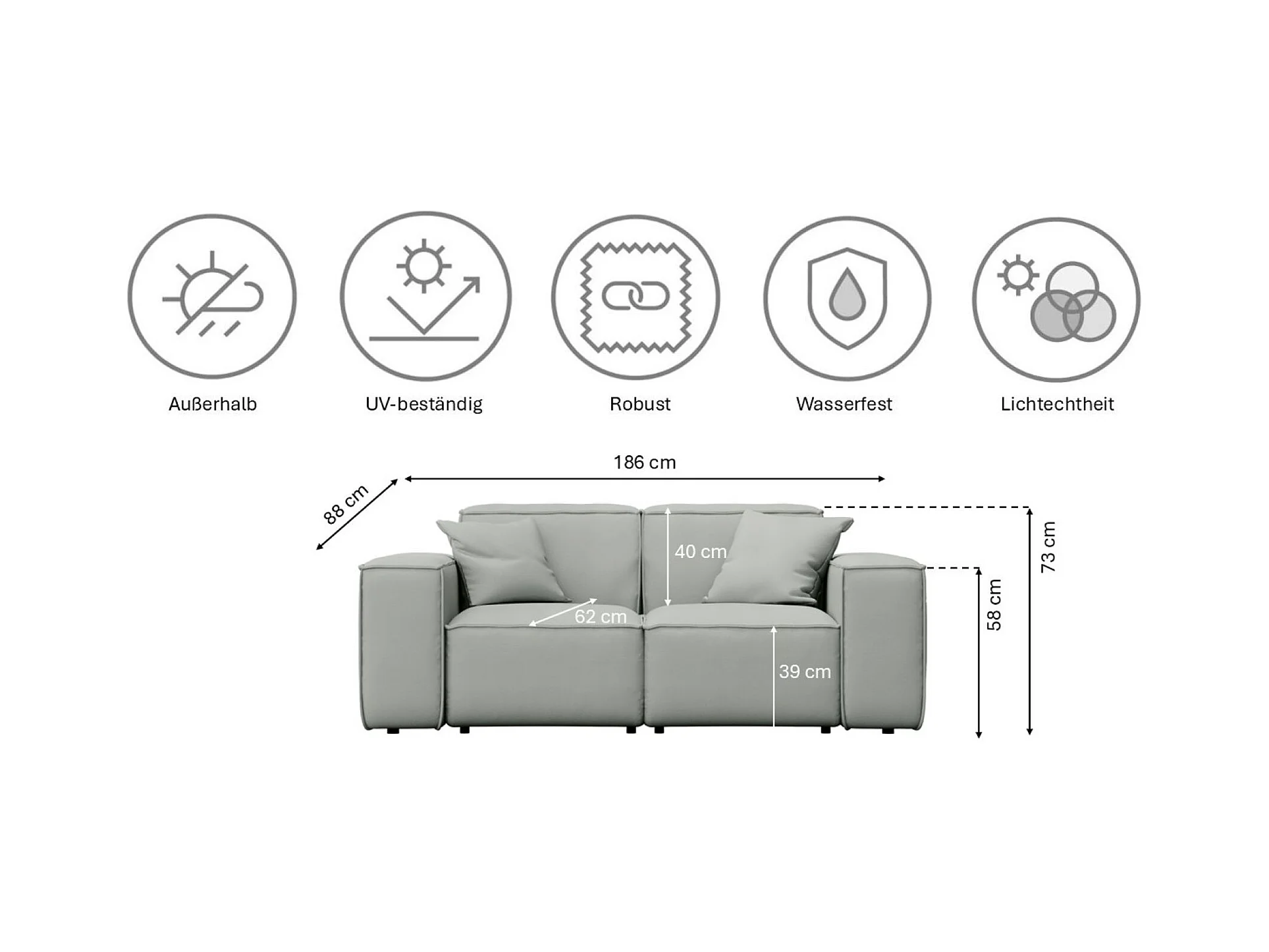 Tuinmeubelset 2+1+1 MALIBU, stof ODYSSEY, lichtgrijs
