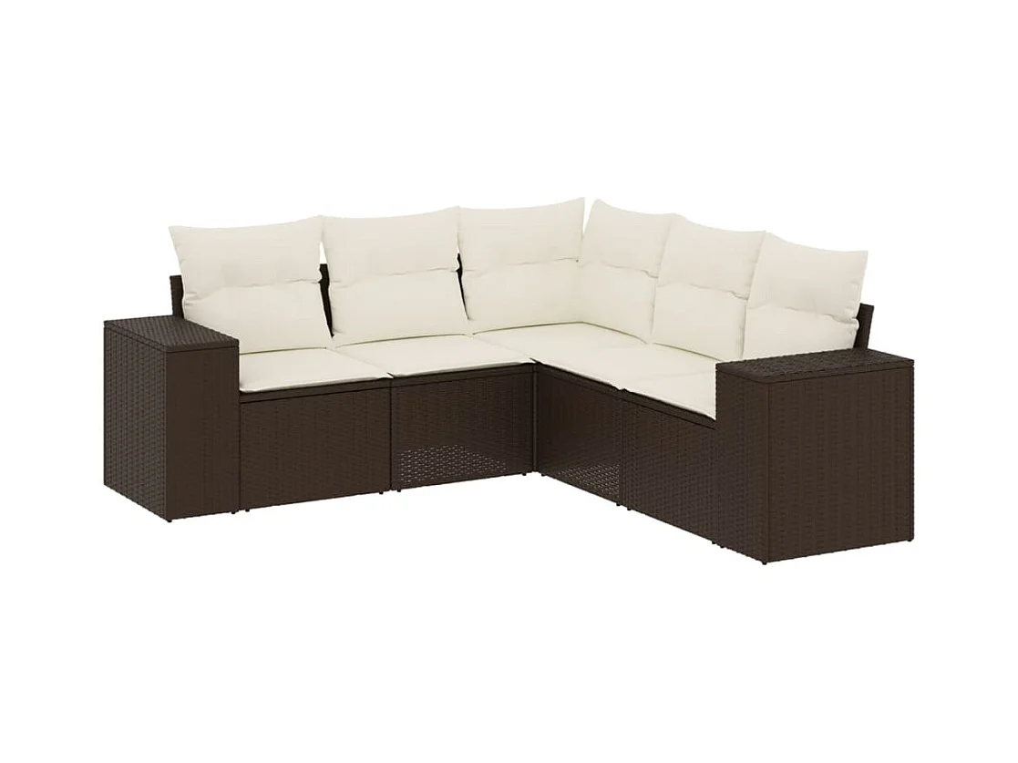 Tuinmeubelset met kussens 5 stuks bruin gevlochten hars