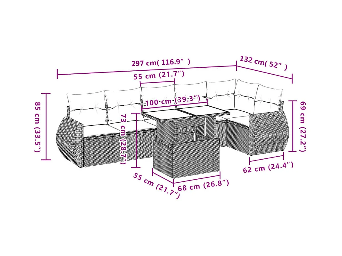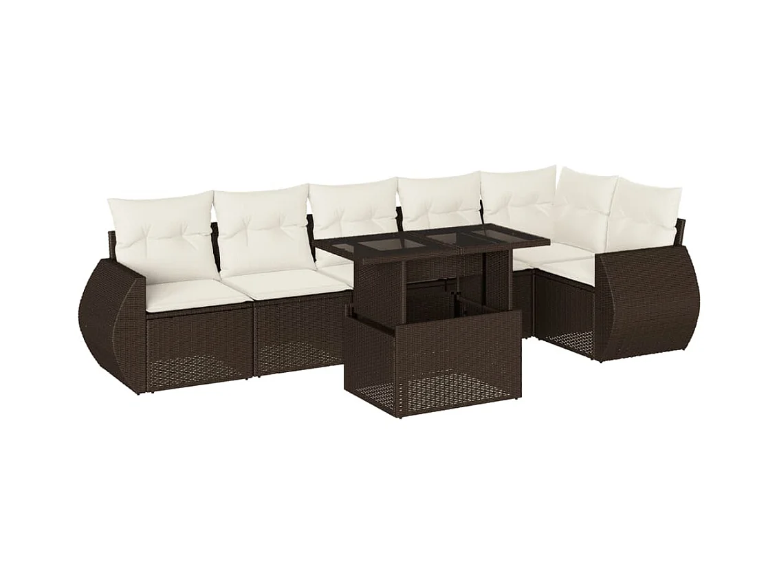 Tuinmeubelset met kussens 7 stuks bruin riet hars