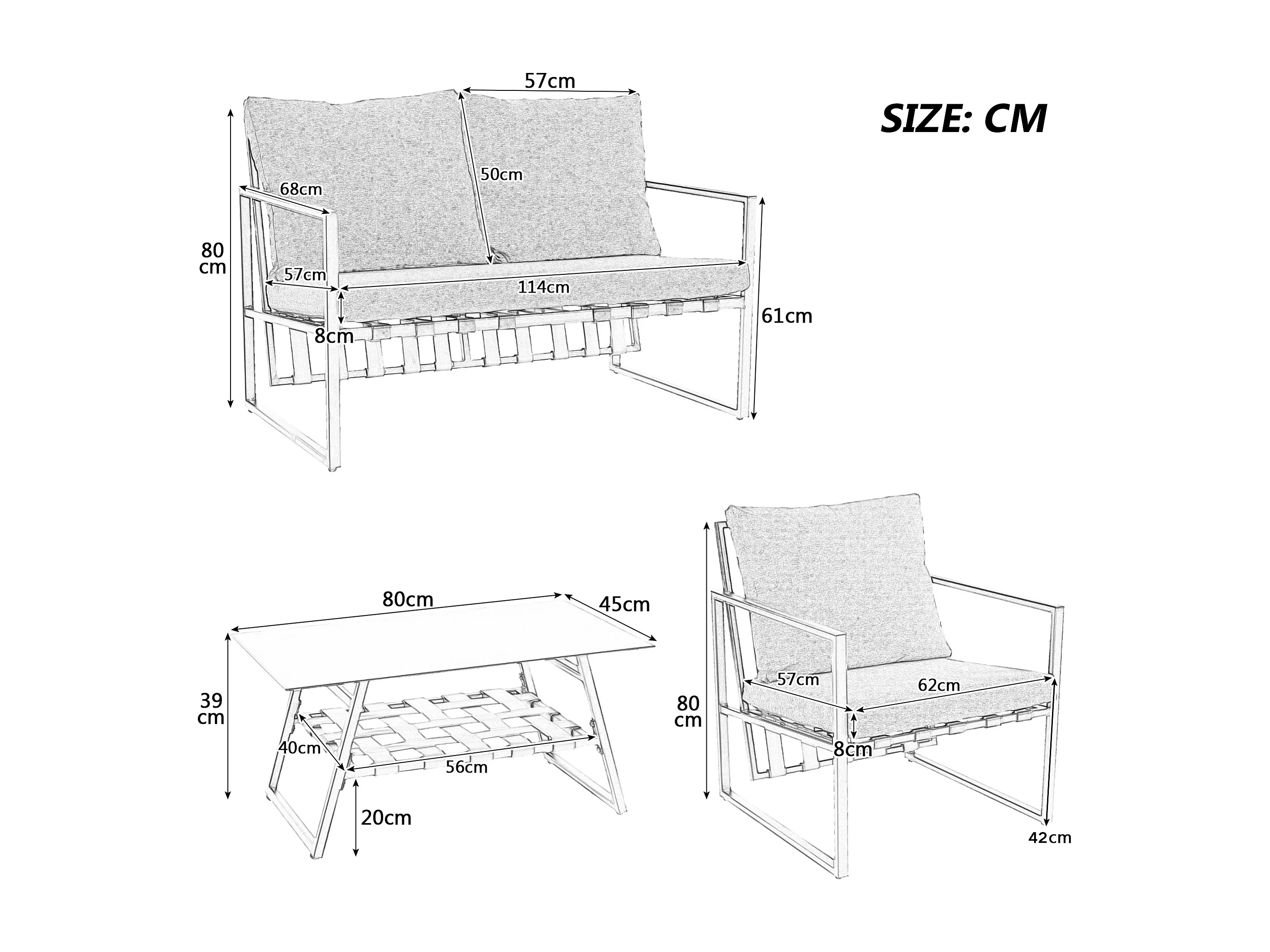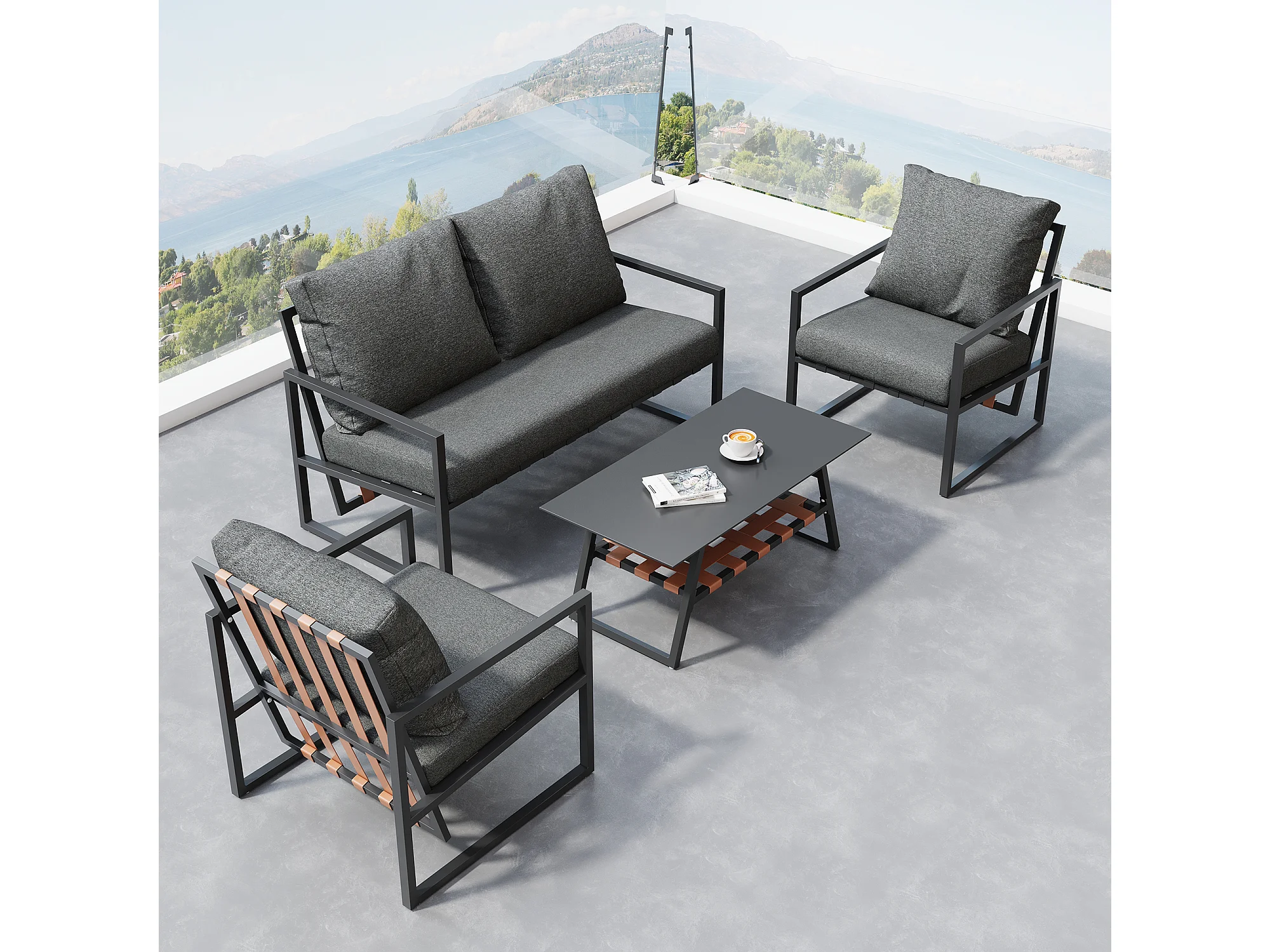 Tuinmeubelset, tuinmeubelset voor 4 personen met bank, salontafel en kussens, afneembare stoffen hoes, zwart